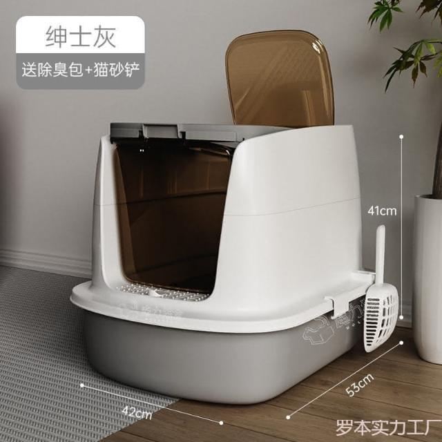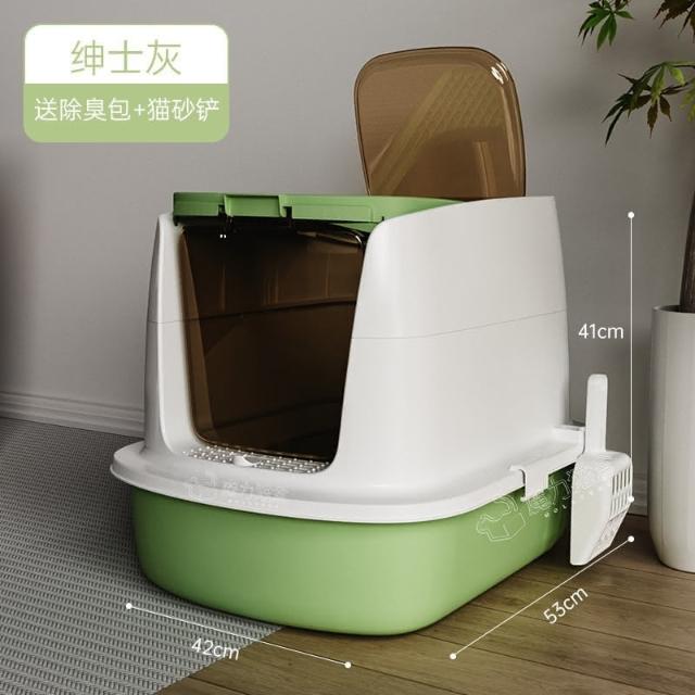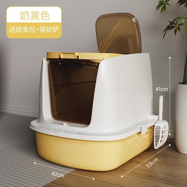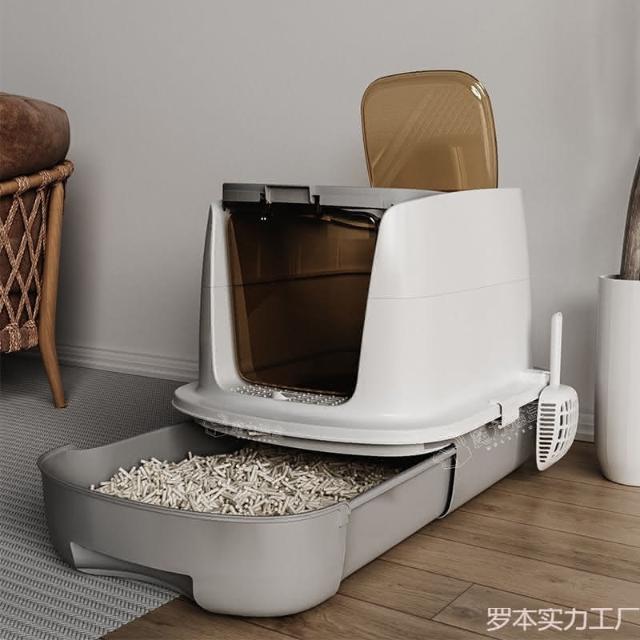 貓砂盆超大號 全封閉頂入式貓廁所 抽屜幼貓咪貓沙屎盆子防外濺防臭 雙漏砂設計 阻隔貓砂外濺 防帶出避免浪費貓砂 52*41*41cm