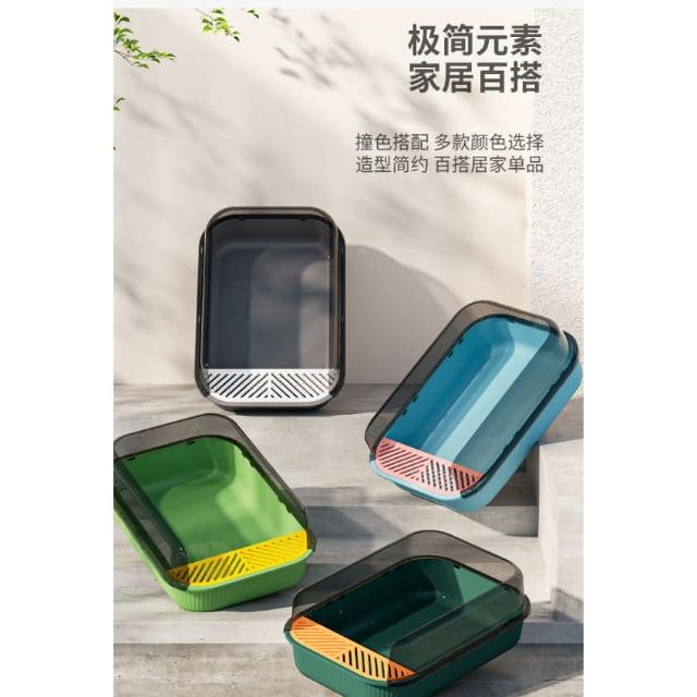 高圍欄半封閉式貓砂盆 大空間肥貓廁所加深盆體防外濺貓沙屎盆 加高擋板 加深盆體 34*50*19cm