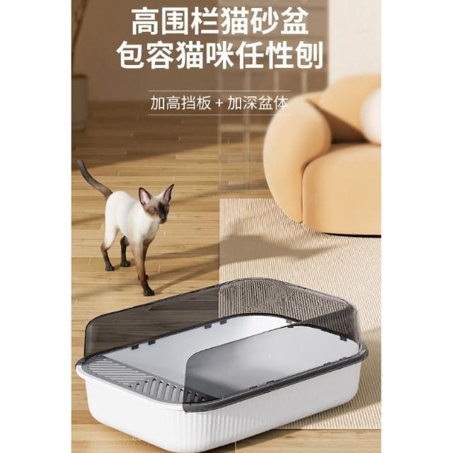 高圍欄半封閉式貓砂盆 大空間肥貓廁所加深盆體防外濺貓沙屎盆 加高擋板 加深盆體 34*50*19cm