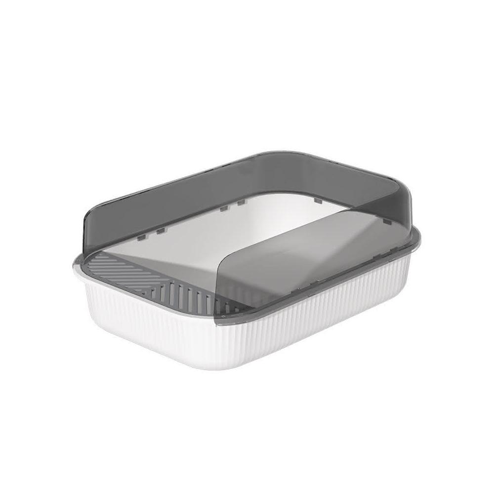 高圍欄半封閉式貓砂盆 大空間肥貓廁所加深盆體防外濺貓沙屎盆 加高擋板 加深盆體 34*50*19cm