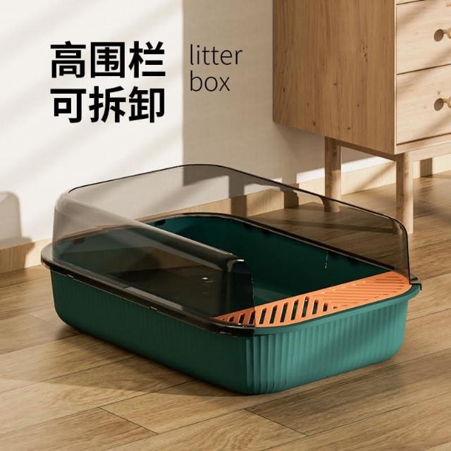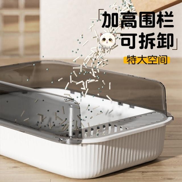 高圍欄半封閉式貓砂盆 大空間肥貓廁所加深盆體防外濺貓沙屎盆 加高擋板 加深盆體 34*50*19cm