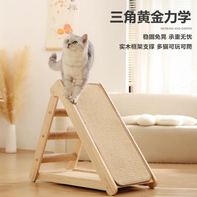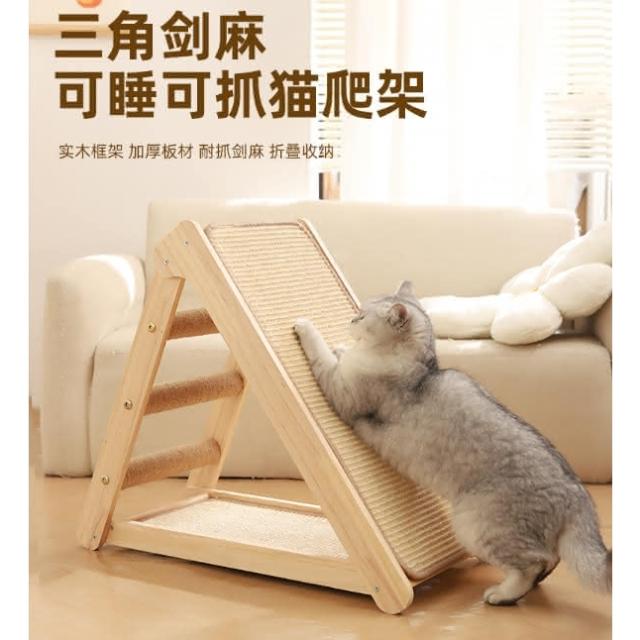 貓抓板貓窩 一體耐磨不掉屑實木貓爬架 佔地小劍麻墊貓抓墊貓咪玩具 寵物睡床 30*60*52cm