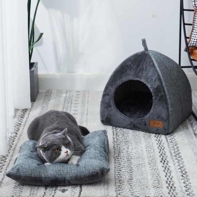 貓窩狗窩冬季保暖三角形封閉式貓窩 四季通用貓房子 深度睡眠寵物窩 寵物睡床 多規格選擇