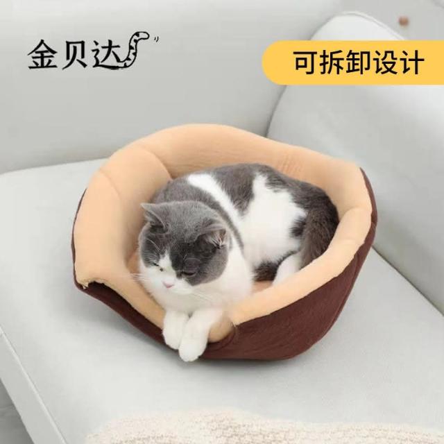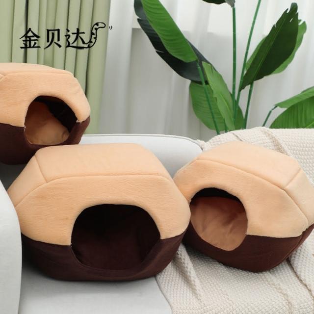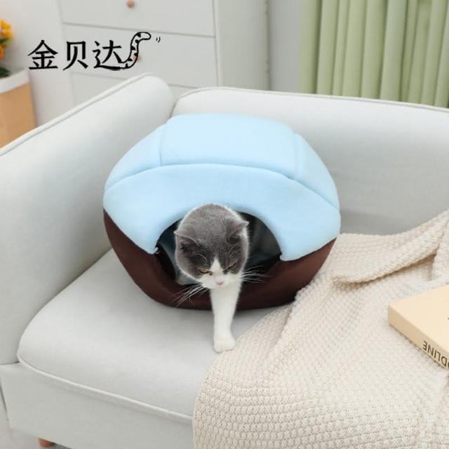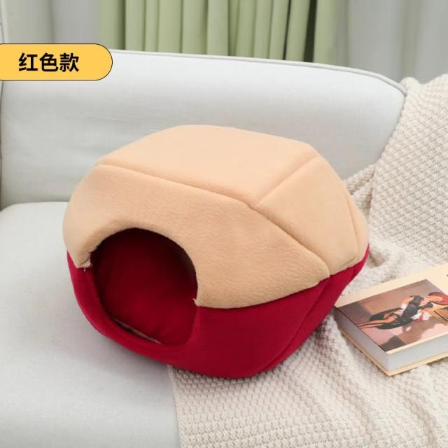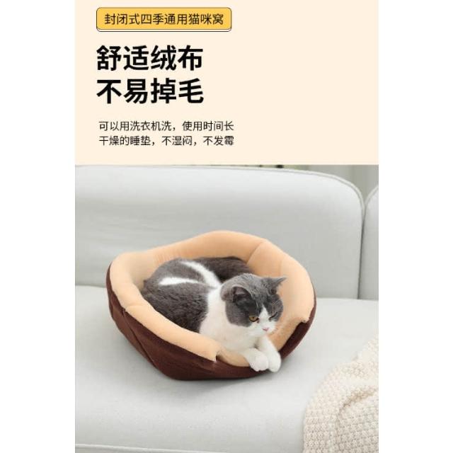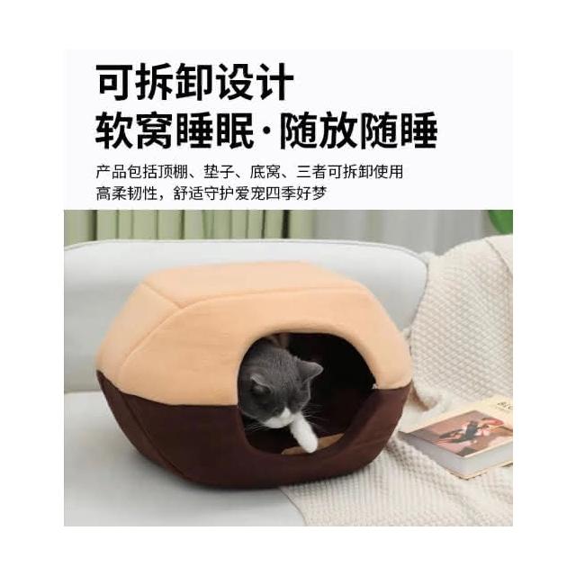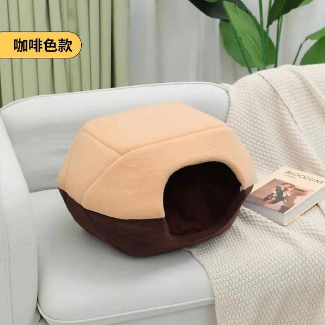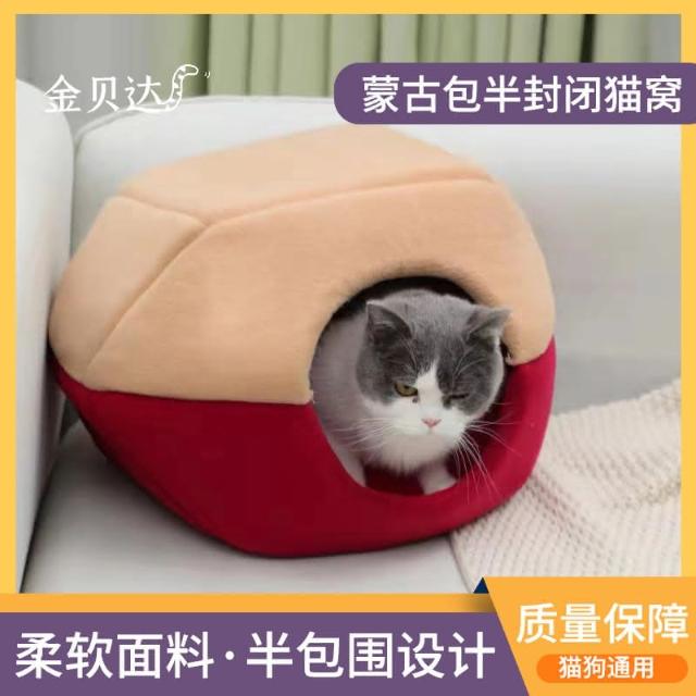 蒙古包造型貓窩 可拆洗半封閉貓窩 圓形加厚長毛絨狗窩 墊子帳篷 寵物睡床 全可拆洗 內部大空間 S/M/L 紅色/藍色/咖色