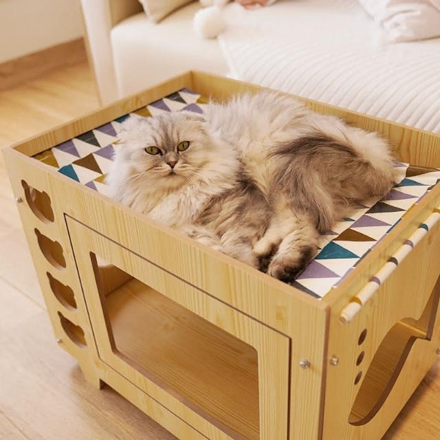 悠悠小鋪貓窩狗窩木質雙層吊床窩 一體貓咪用品貓窩 軟墊鏤空拼接組裝貓舍 寵物睡床 吊床設計 離地設計 40*44*55cm