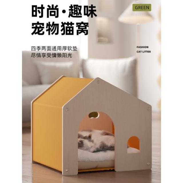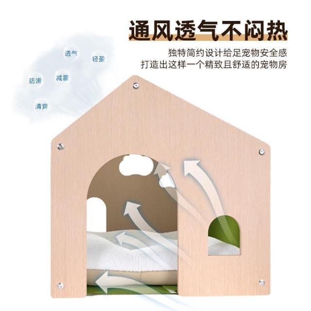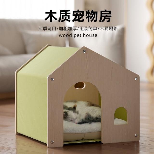高級木製貓窩 狗窩 產房四季通用環保實木傢俱 可拆洗不悶熱 寵物睡床 實木免漆環保板材 堅固耐用 環保板材 52*47*50cm