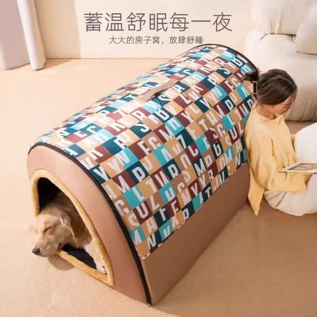 狗窩冬季保暖大型犬超大狗屋 房子 封閉式冬天可拆洗金毛寵物四季用 寵物睡床 柔軟舒適 雲朵棉 封閉設計 大空間M/L/XL