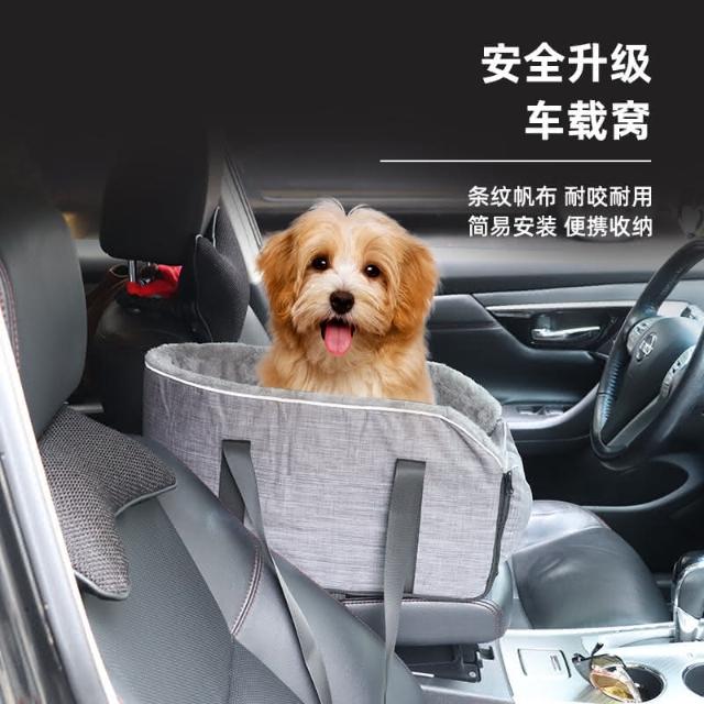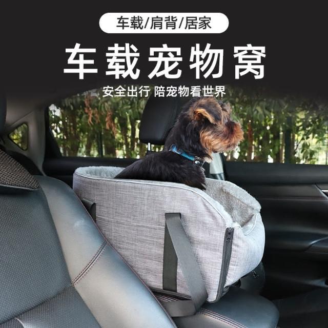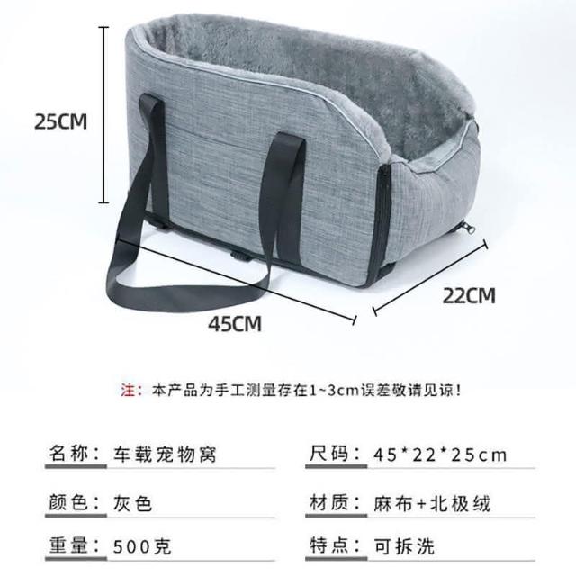 宠物车载加绒猫窝 狗窝 便携式小型犬中控包可拆装车用手提狗窝 睡床 方便的储存空间 长度可调节的连接带 45*22*25cm