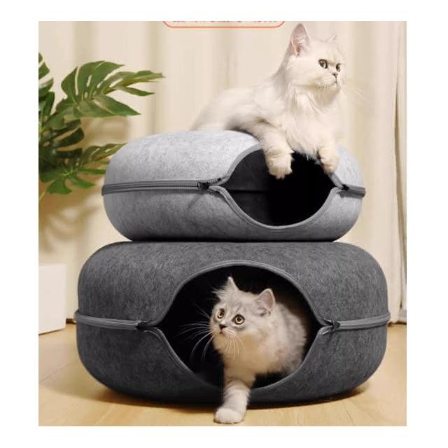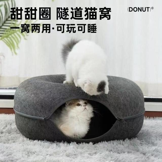 貓窩 寵物冬季貓咪圓窩用品網紅輪胎貓窩羊毛保暖毛氈甜甜圈透氣隧道窩 堅挺有型耐用耐磨 拉鏈式可拆洗