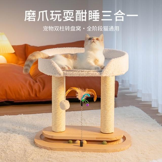 網紅轉盤貓窩 貓樹一體貓爬架 大型貓布偶緬因攀爬劍麻柱子貓屋抓板45*30*42cm