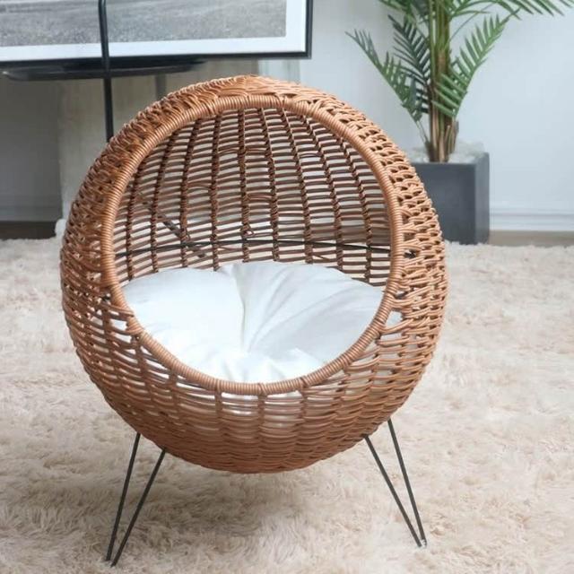 〖悠悠小鋪〗透氣手工藤編貓窩 四季通用 半封閉式貓咪秋冬保暖寵物窩 貓別墅 寵物用品