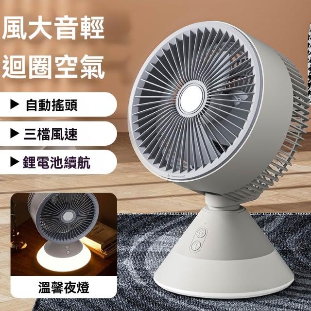 〖悠悠小鋪〗桌面風扇 自動搖頭氛圍夜燈 空氣循環扇家用辦公USB充電小風扇