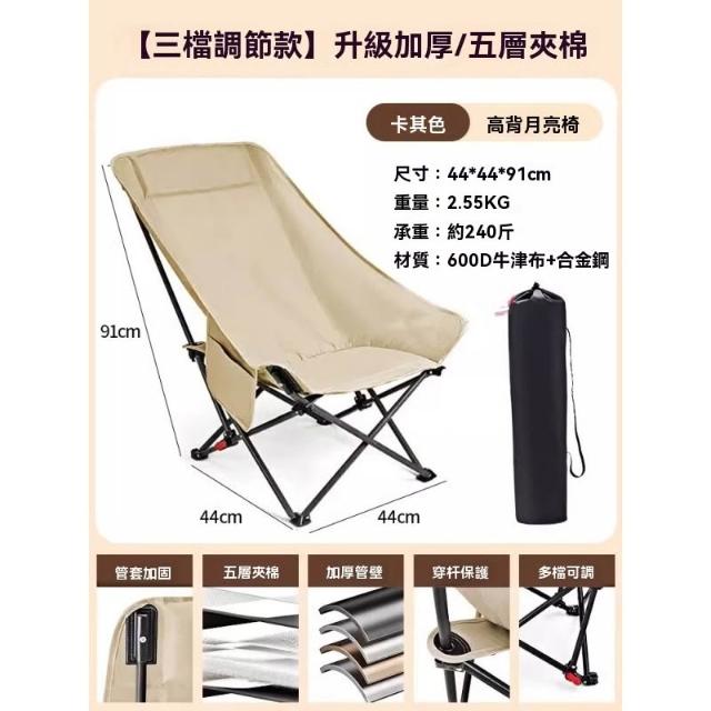 〖悠悠小鋪〗戶外折疊椅 加高月亮椅 可調節露營椅子 便攜式躺椅 沙灘釣魚野餐椅凳