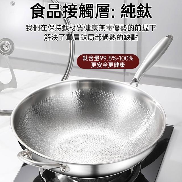 現貨 一級不沾錘紋鈦炒鍋 附鍋蓋 容量約 4.2L 錘紋工藝 導熱均勻不沾黏 耐高溫耐磨損 一體成型手柄握感舒適