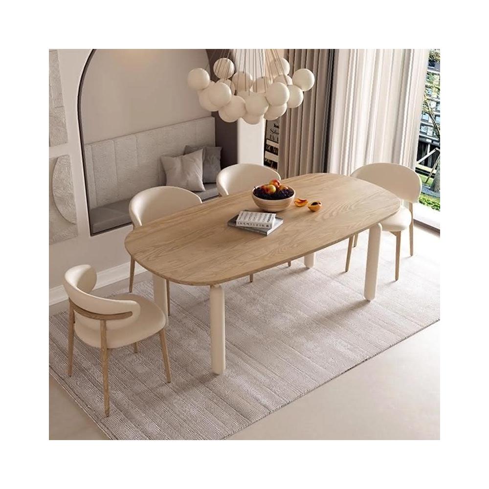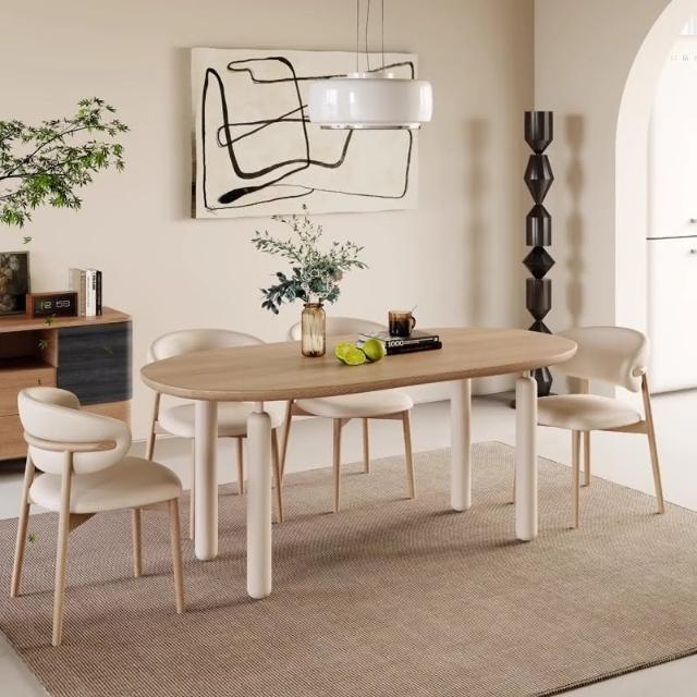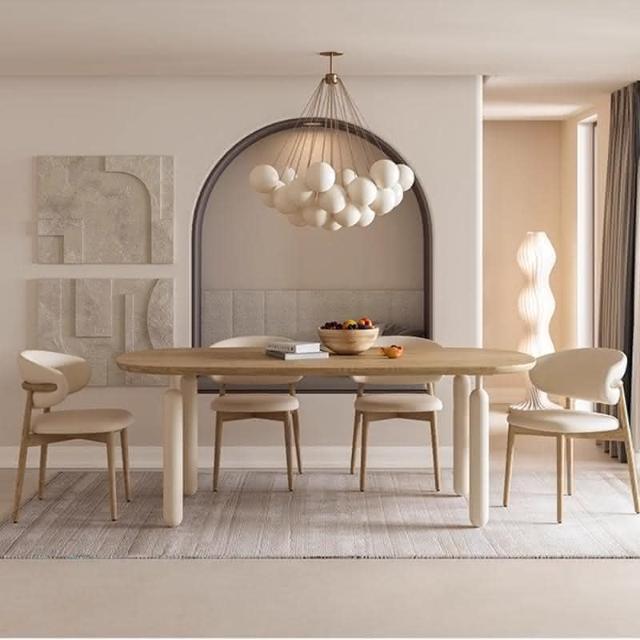法式奶油风椭圆形实木餐桌简约小户型家用饭桌创意复古洽谈办公桌