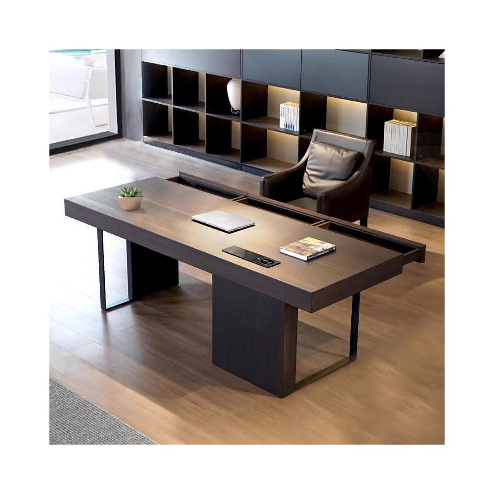 轻奢意式极简实木书桌现代简约客厅家用电脑桌高端老板书房办公桌