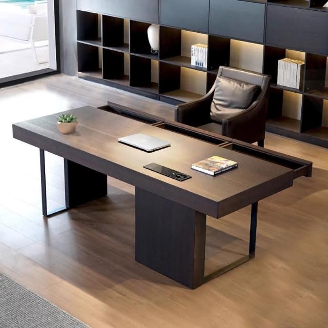 轻奢意式极简实木书桌现代简约客厅家用电脑桌高端老板书房办公桌