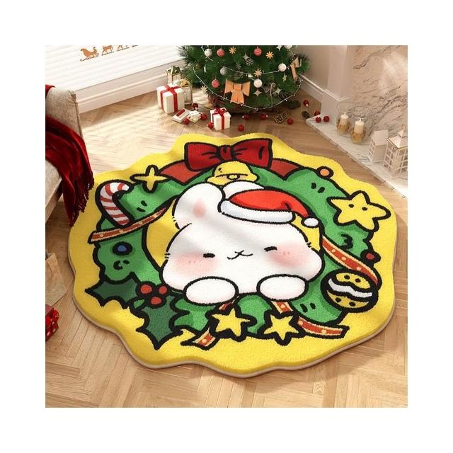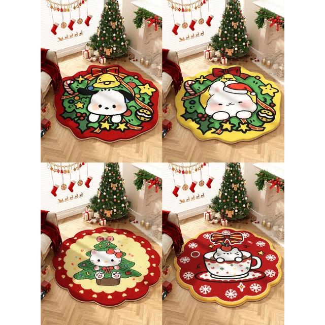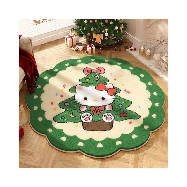 圣诞节圆形地毯hellokitty毛绒节日氛围感装饰地垫客厅沙发茶几毯