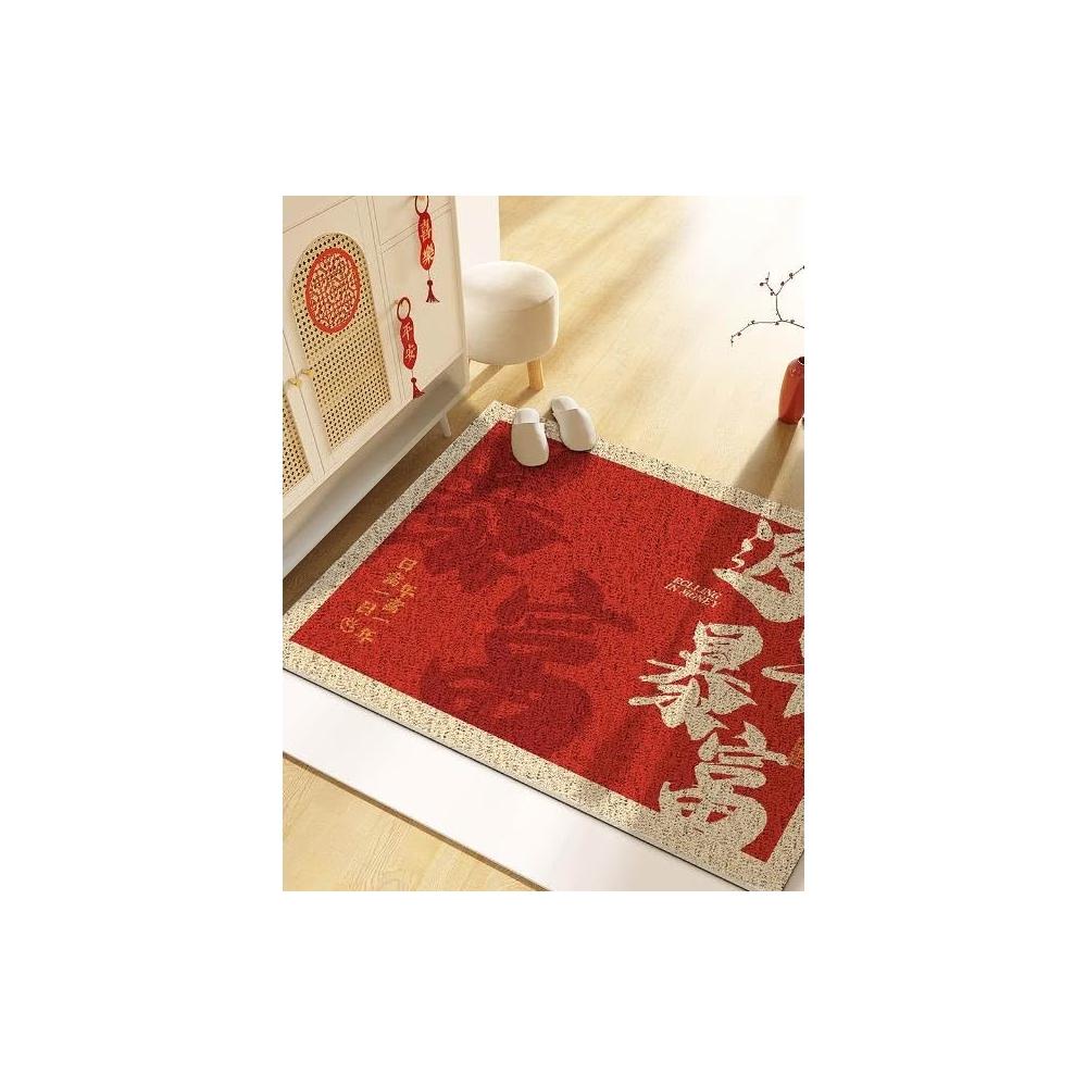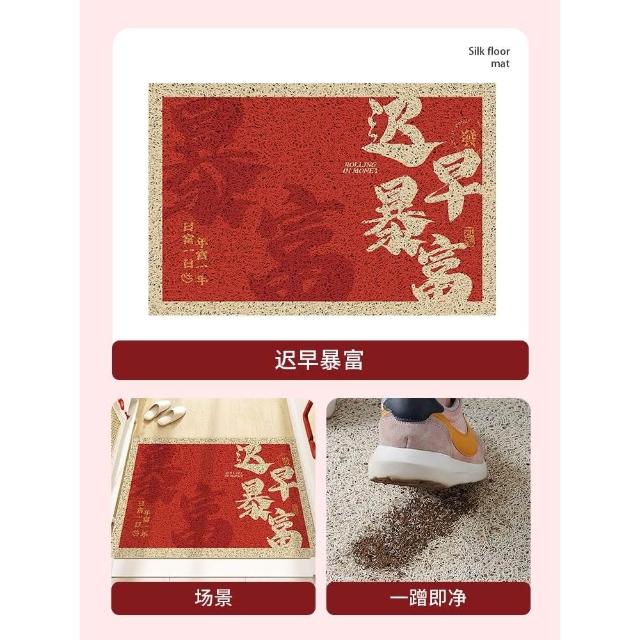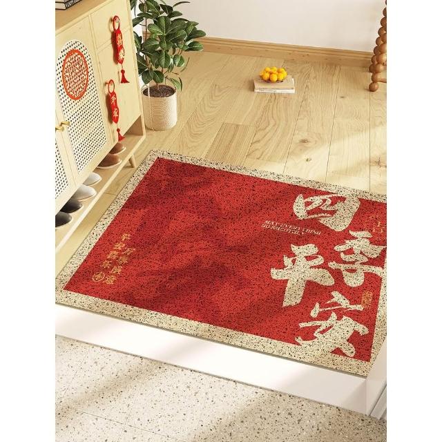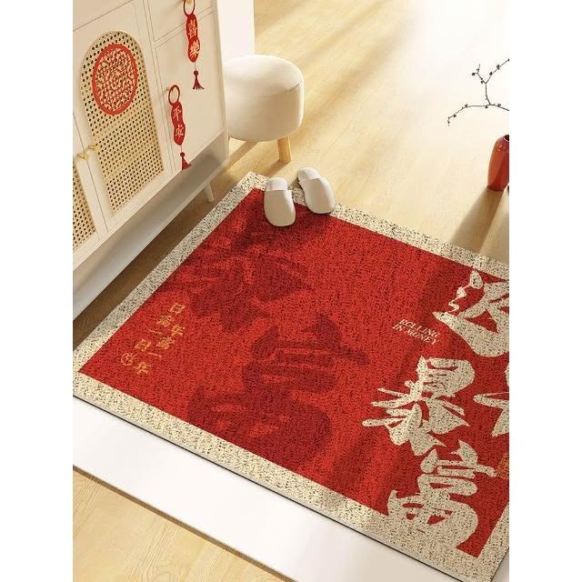 新年紅色喜慶玄關出入平安可裁剪絲圈地墊入戶門墊進門口腳墊地毯