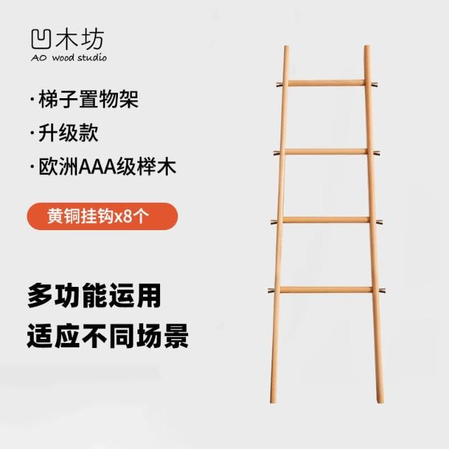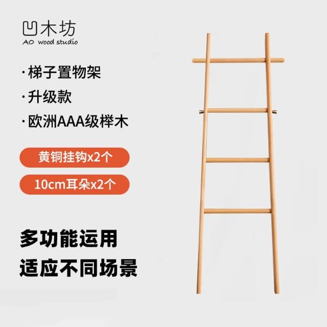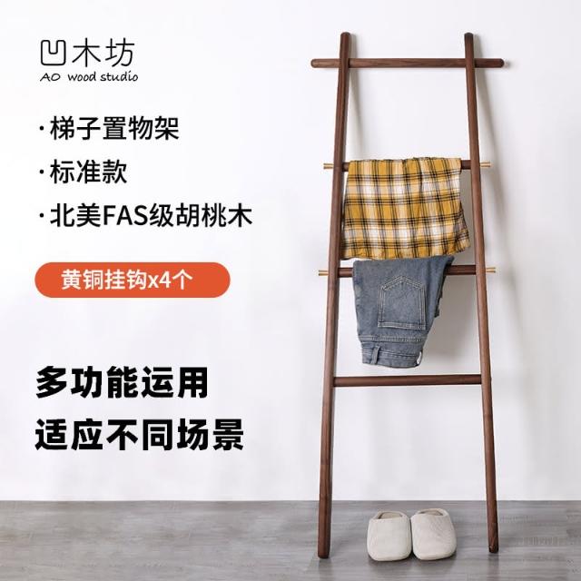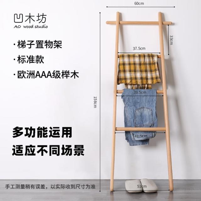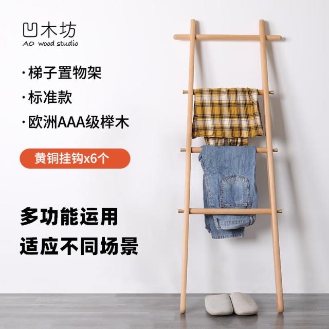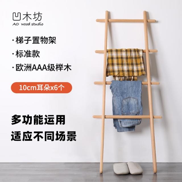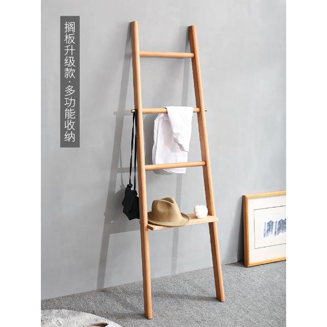 實木梯形置物架落地臥室衣帽架床尾入戶小型掛衣架浴室梯子毛巾架