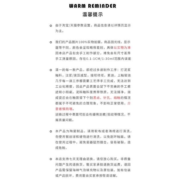• 依照客戶指定配送之商品(約配商品)接獲訂單逾30日您未通知出貨及受領商品,為了保障您的權益,商店得取消訂單,請客戶重新下單購買。