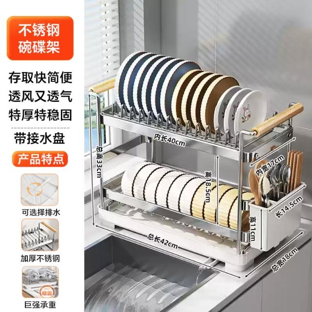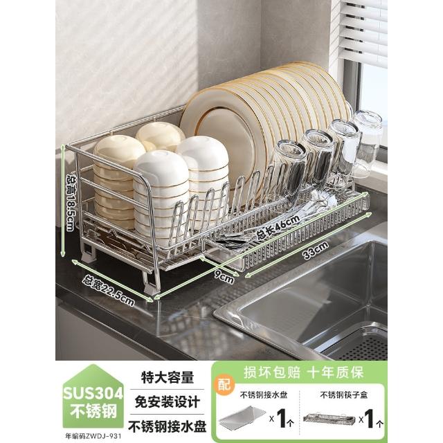 帥仕碗盤瀝水架碗架304不銹鋼廚房置物架瀝水籃放碗筷碗碟收納架