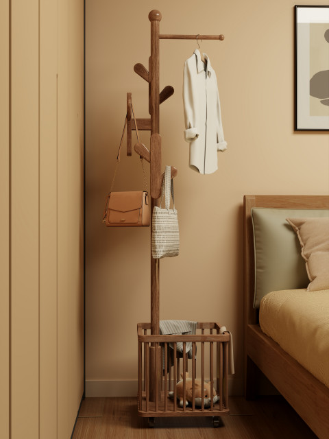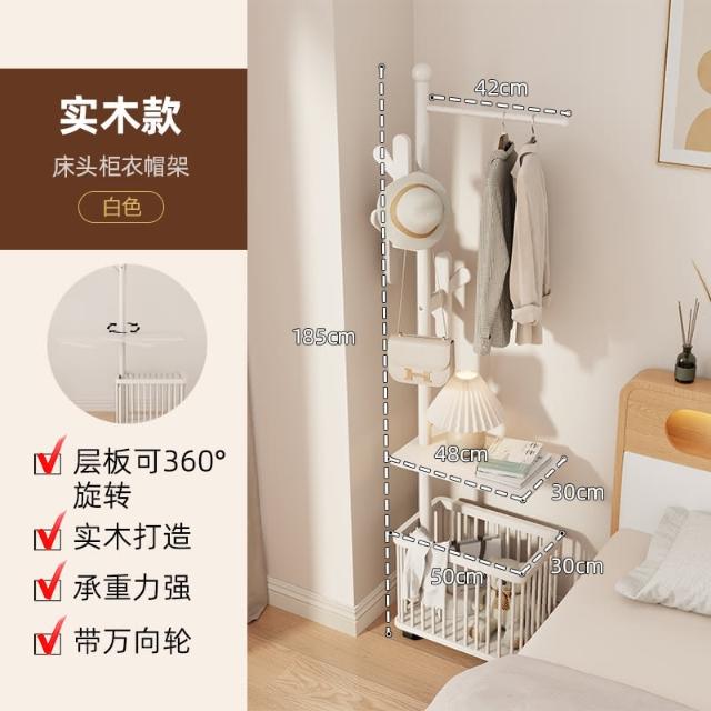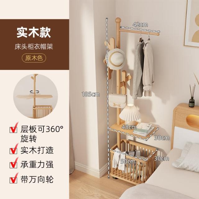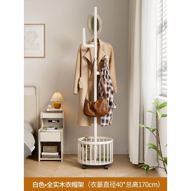 實木衣架落地衣帽架臥室可移動家用髒衣簍置物架掛衣架多功能掛包