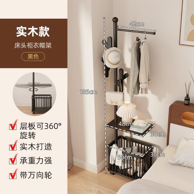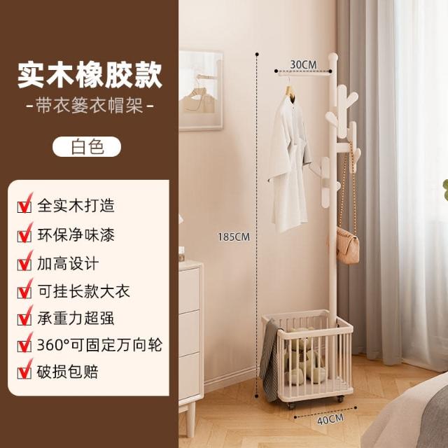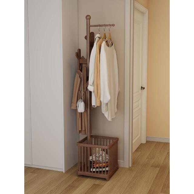 實木衣架落地衣帽架臥室可移動家用髒衣簍置物架掛衣架多功能掛包