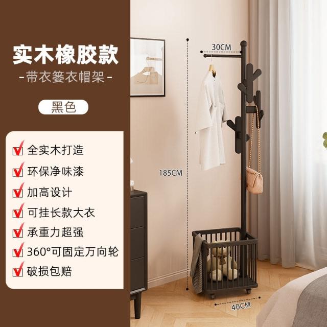 實木衣架落地衣帽架臥室可移動家用髒衣簍置物架掛衣架多功能掛包