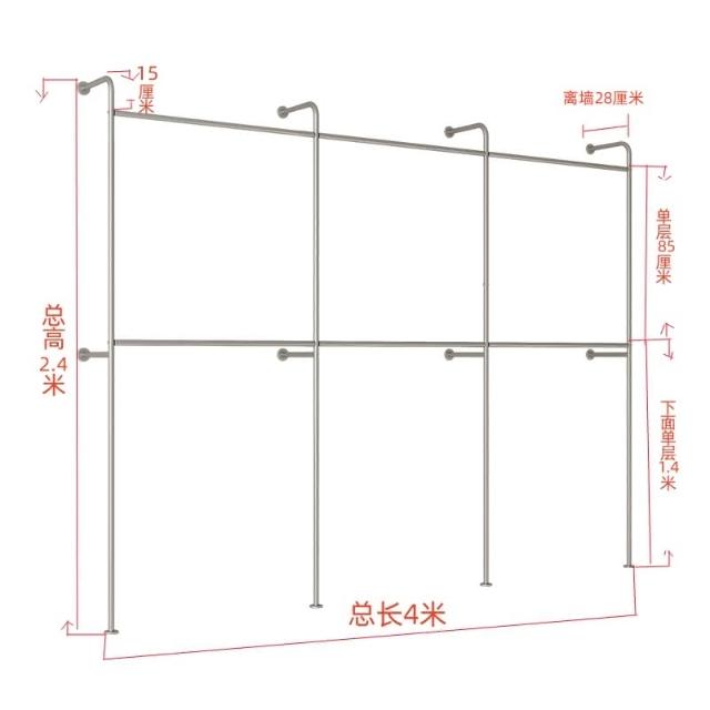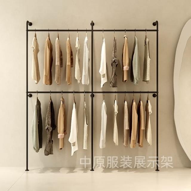 服裝展示架上牆雙層壁掛式服裝店側掛衣帽間掛衣架加厚尺寸可定制