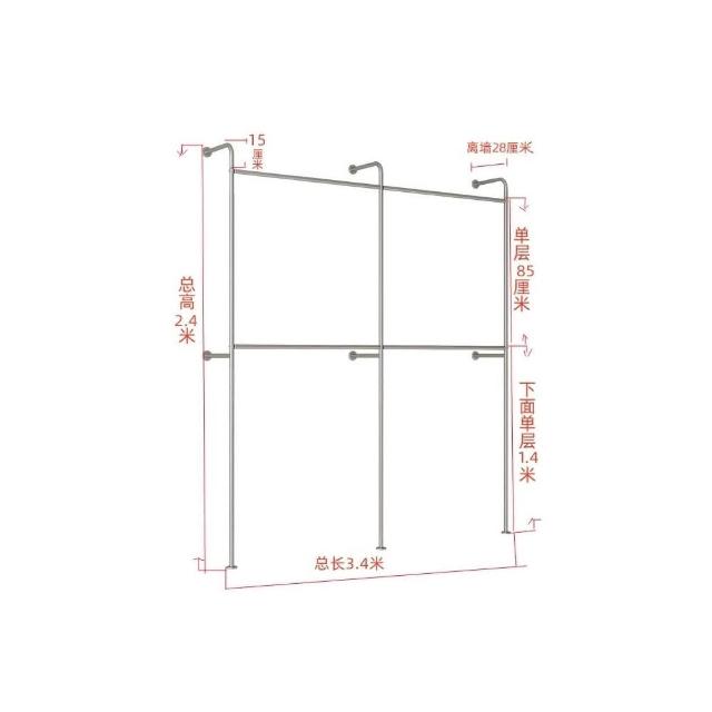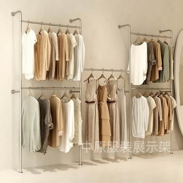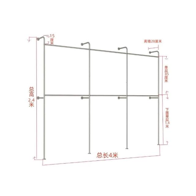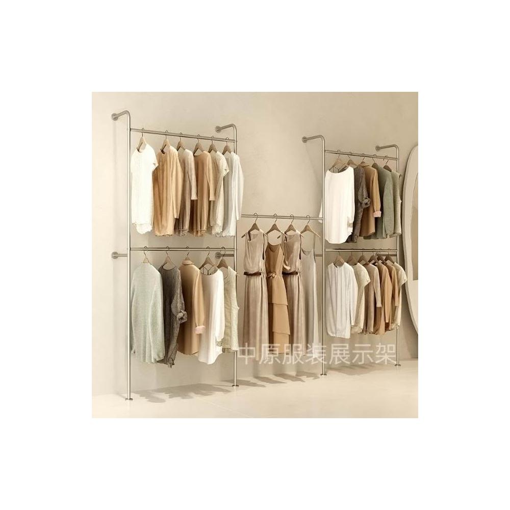 服裝展示架上牆雙層壁掛式服裝店側掛衣帽間掛衣架加厚尺寸可定制