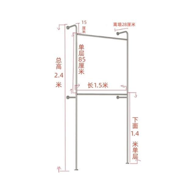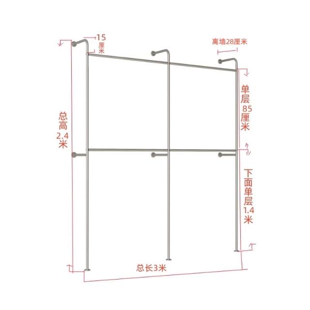服裝展示架上牆雙層壁掛式服裝店側掛衣帽間掛衣架加厚尺寸可定制