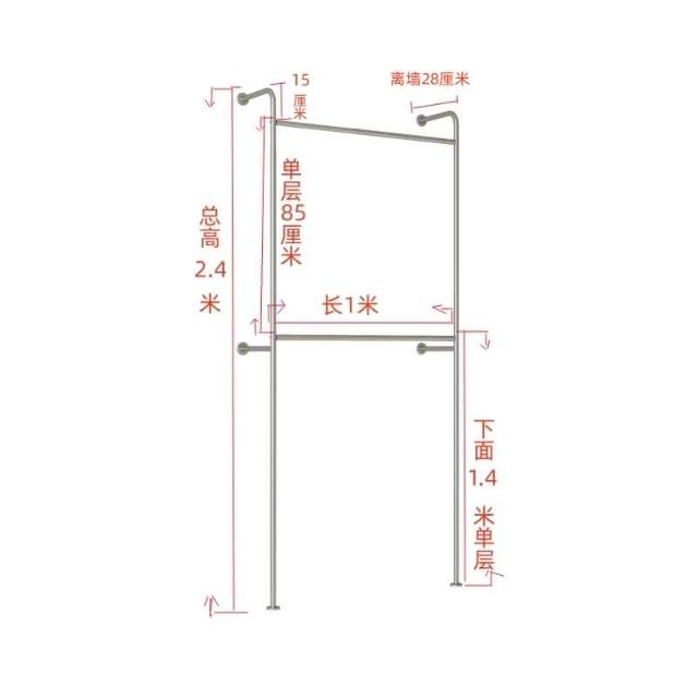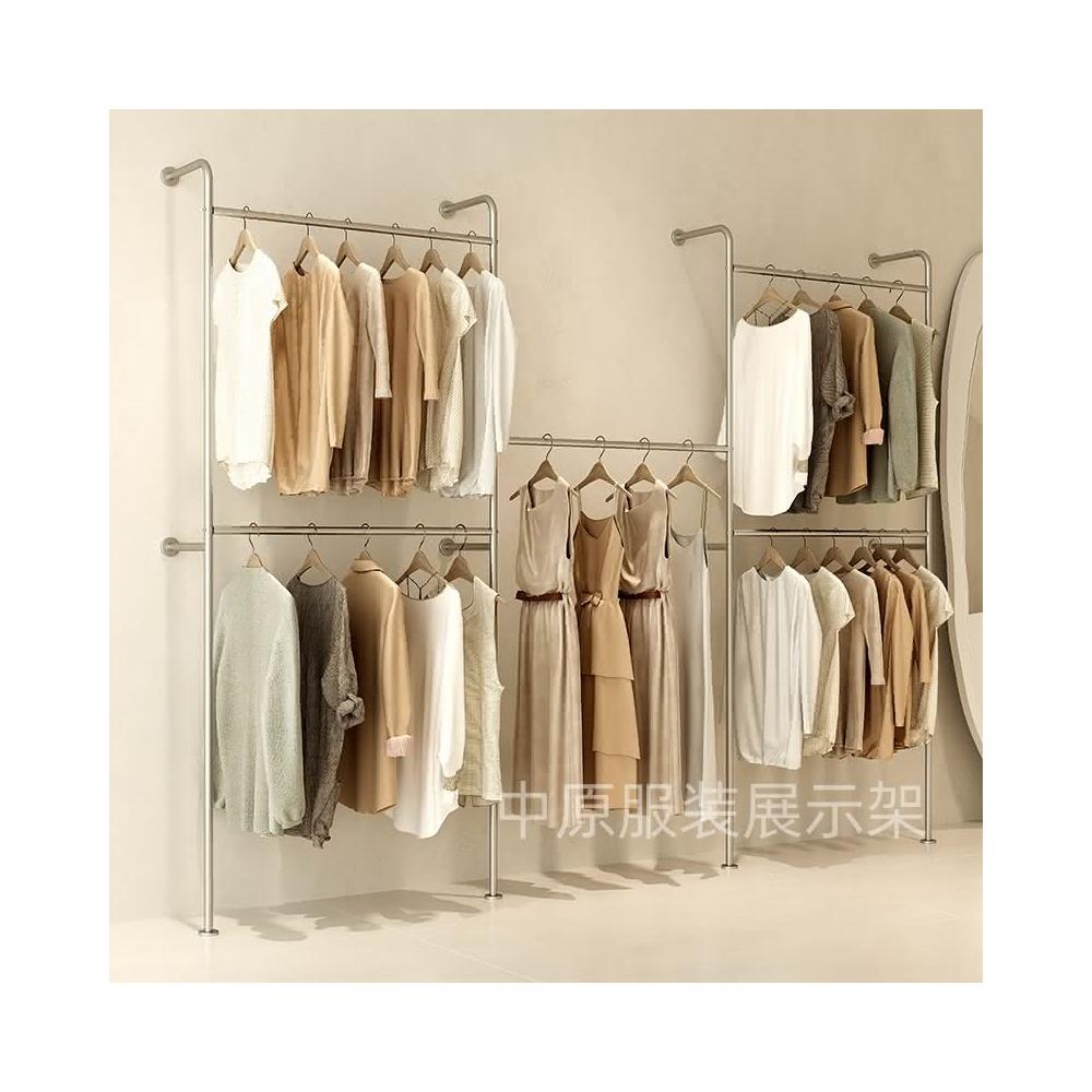 服裝展示架上牆雙層壁掛式服裝店側掛衣帽間掛衣架加厚尺寸可定制
