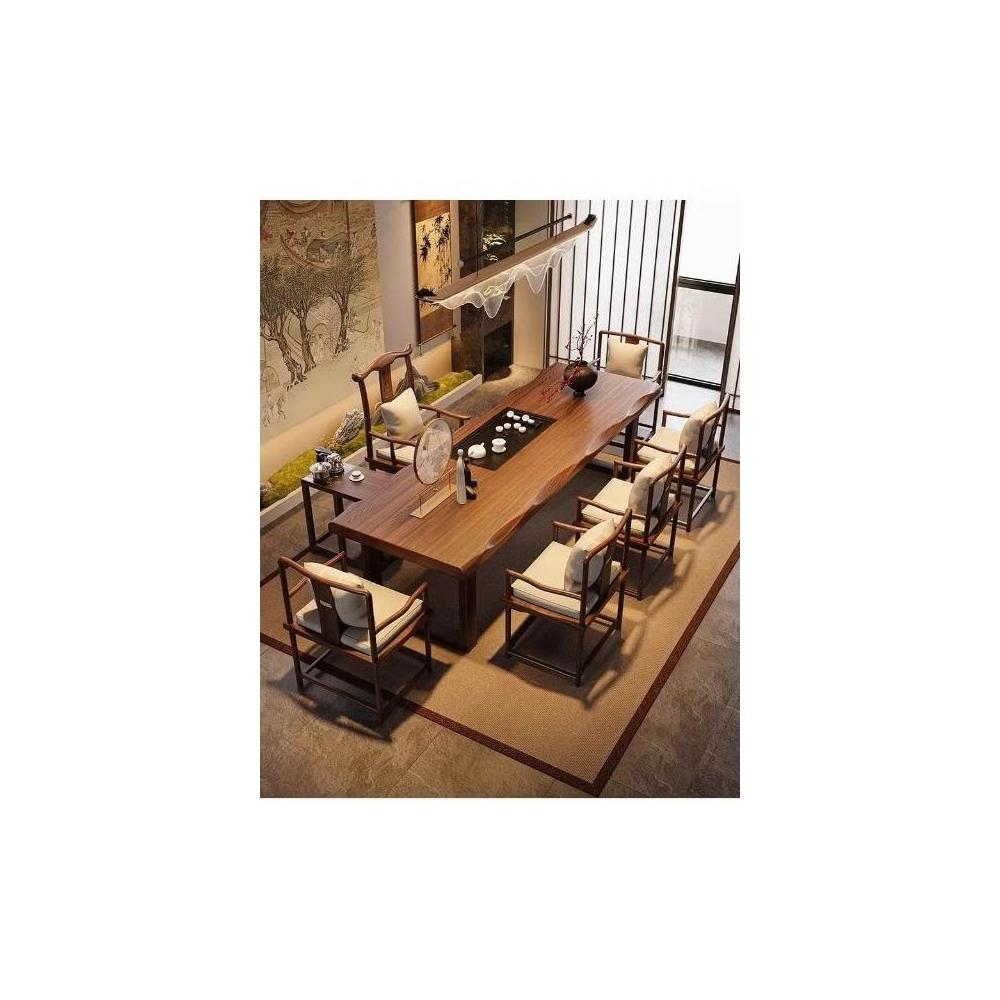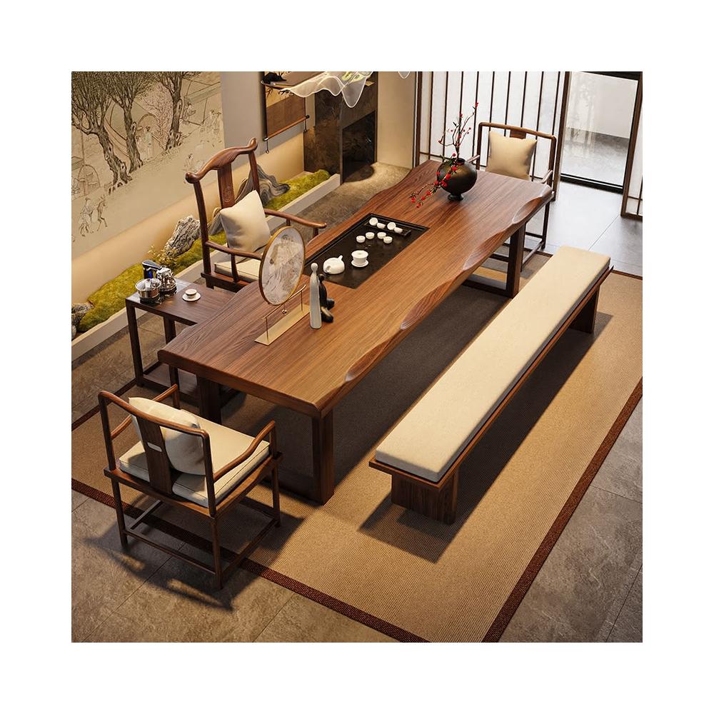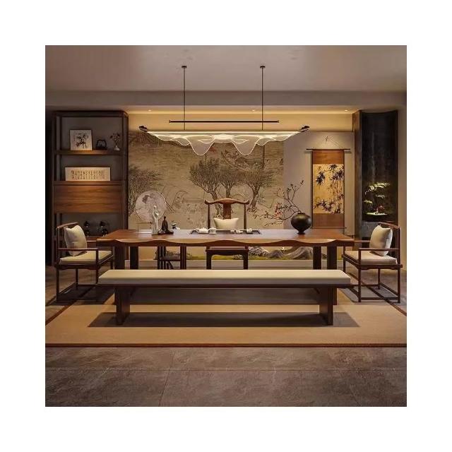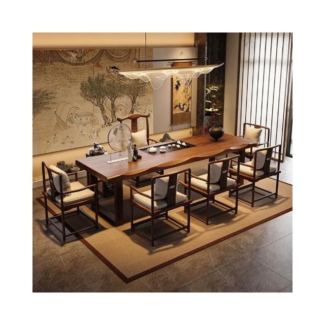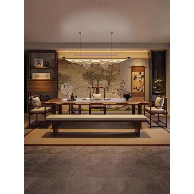 禪意茶桌椅組合新中式實木大板茶台辦公室泡茶桌現代簡約一體茶几
