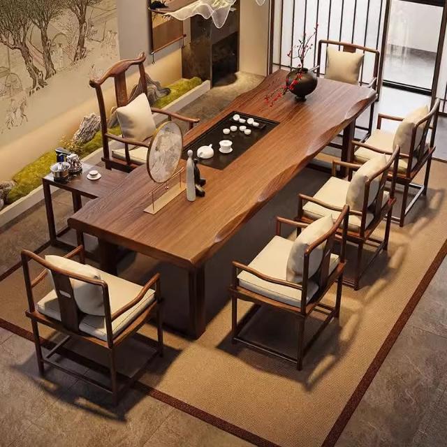 禪意茶桌椅組合新中式實木大板茶台辦公室泡茶桌現代簡約一體茶几