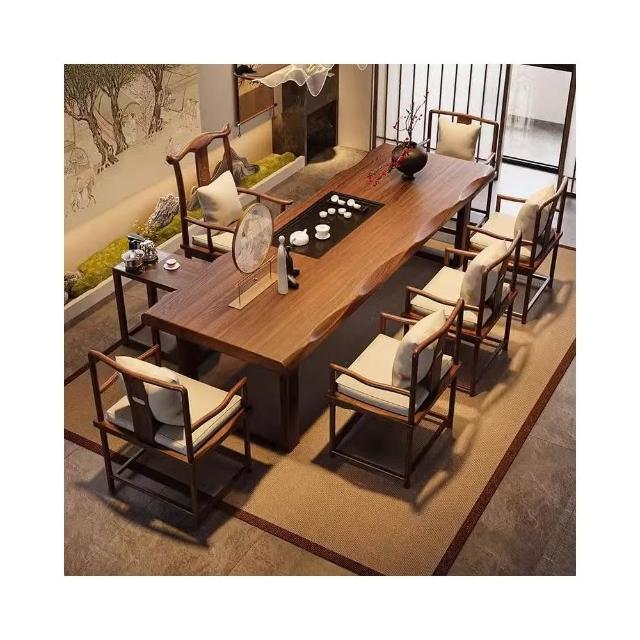 禪意茶桌椅組合新中式實木大板茶台辦公室泡茶桌現代簡約一體茶几