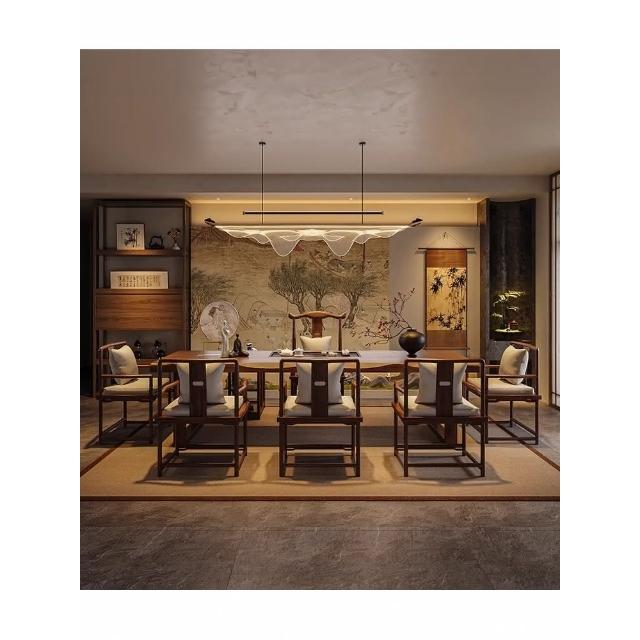 禪意茶桌椅組合新中式實木大板茶台辦公室泡茶桌現代簡約一體茶几