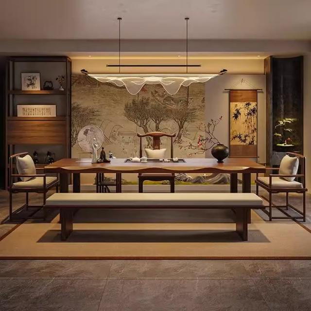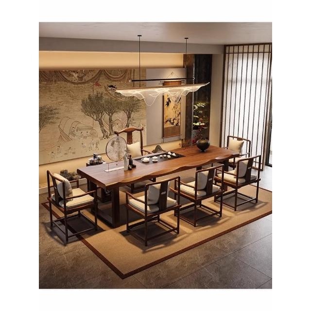 禪意茶桌椅組合新中式實木大板茶台辦公室泡茶桌現代簡約一體茶几