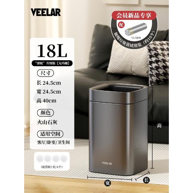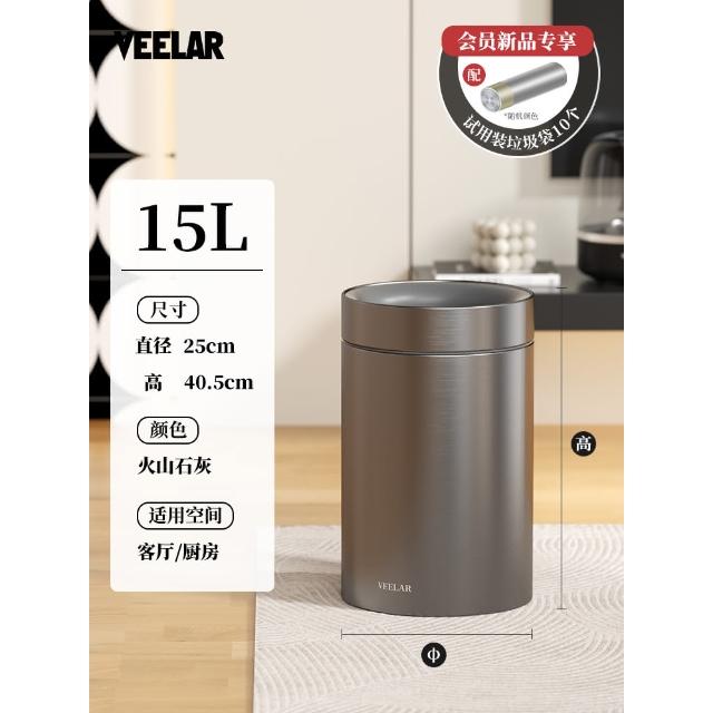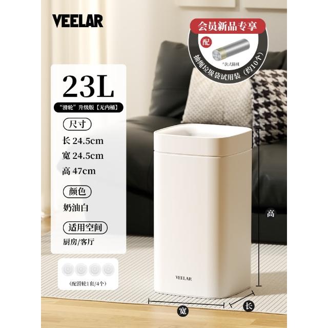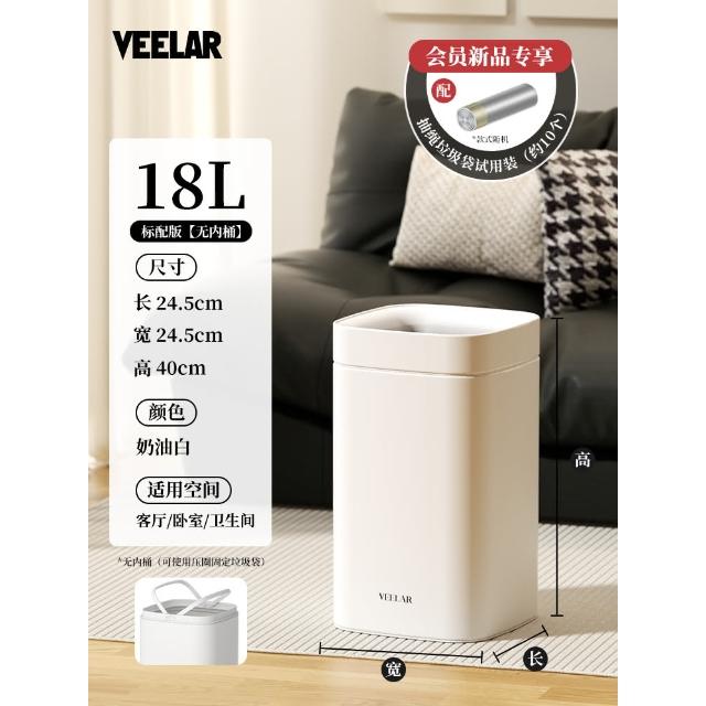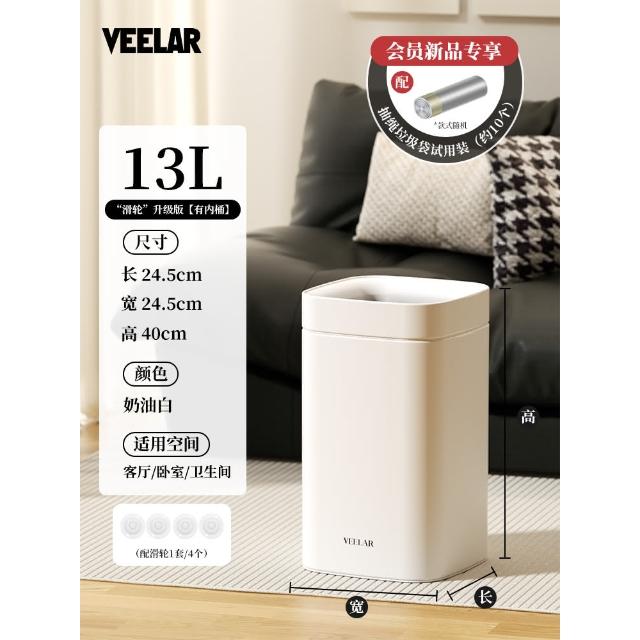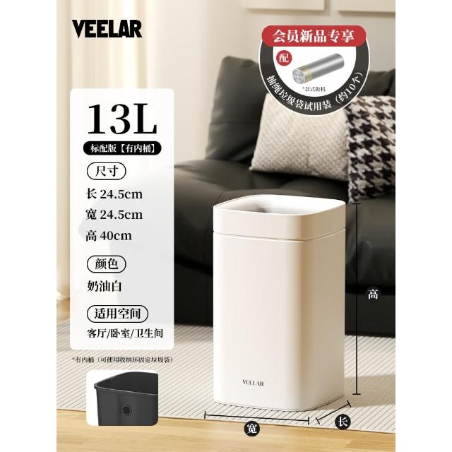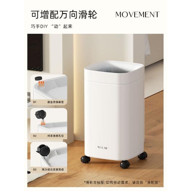VEELAR無蓋垃圾桶2024新款簡約家用廚房臥室衛生間客廳高顏值紙簍