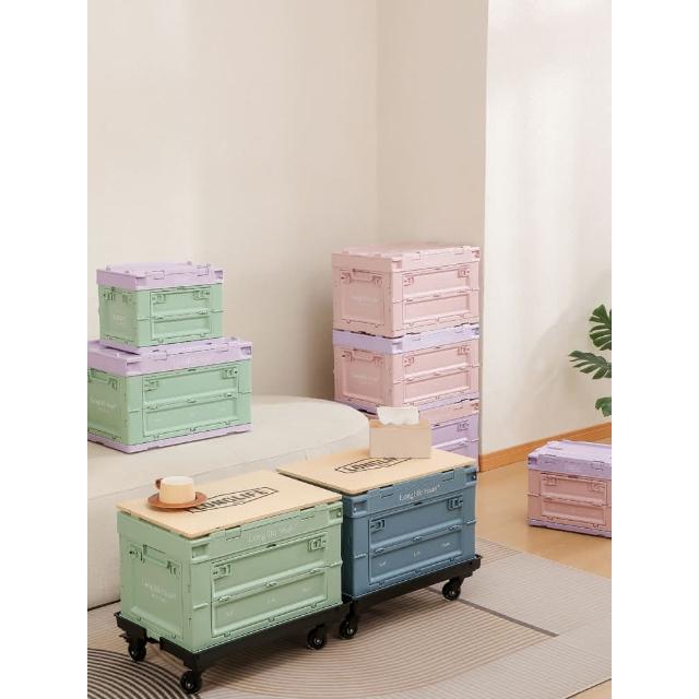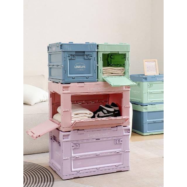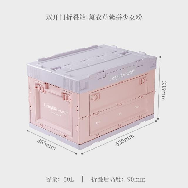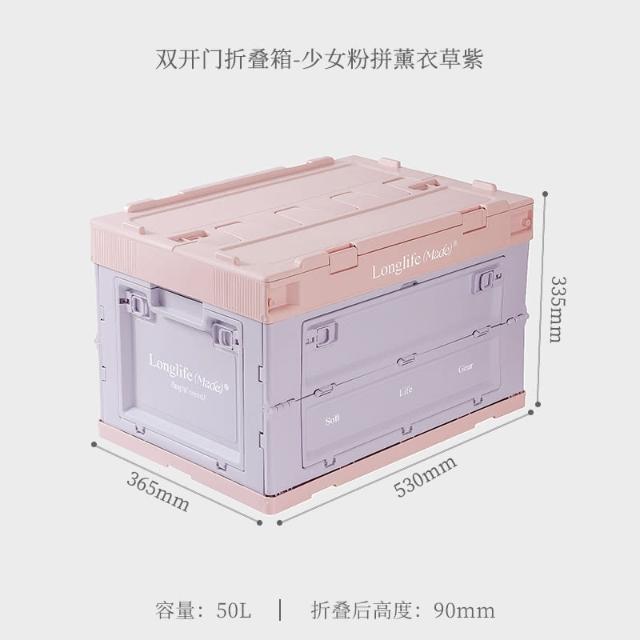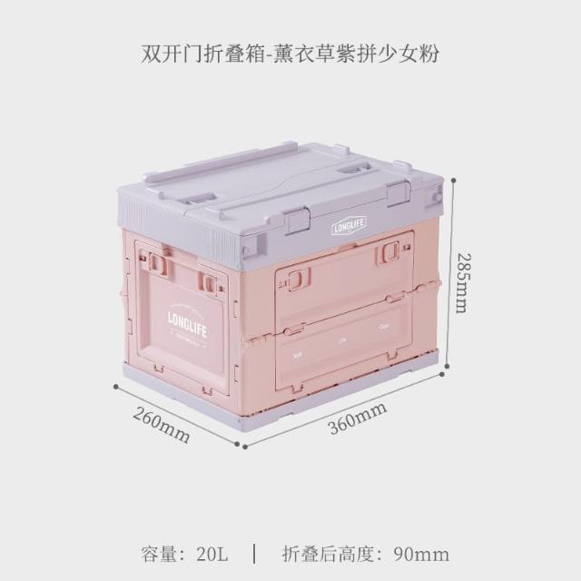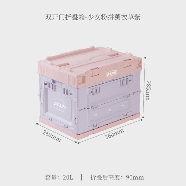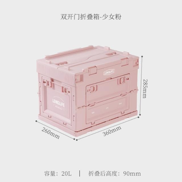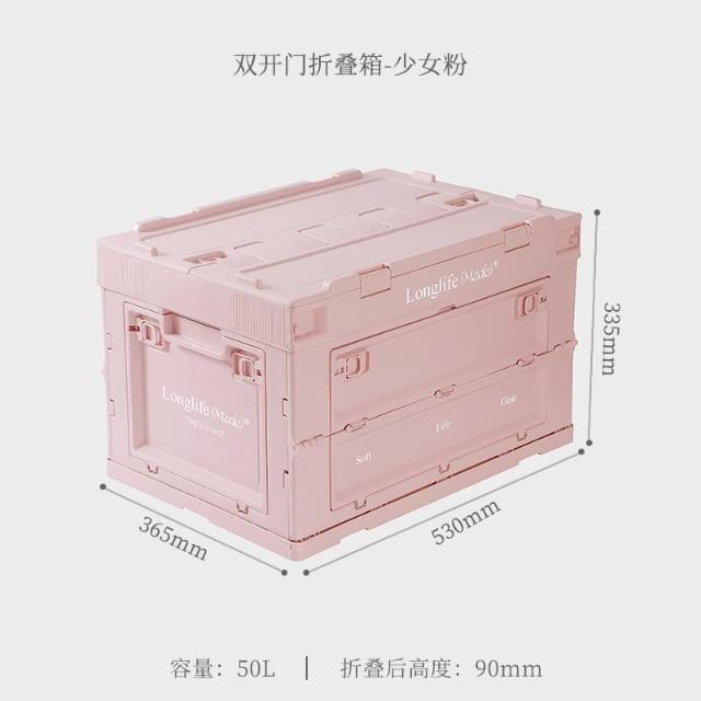 longlife收納箱粉色雙開門折疊箱家用多巴胺儲物箱車載後備箱置物