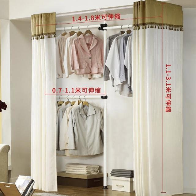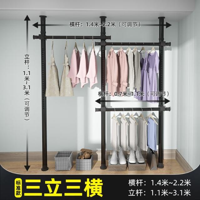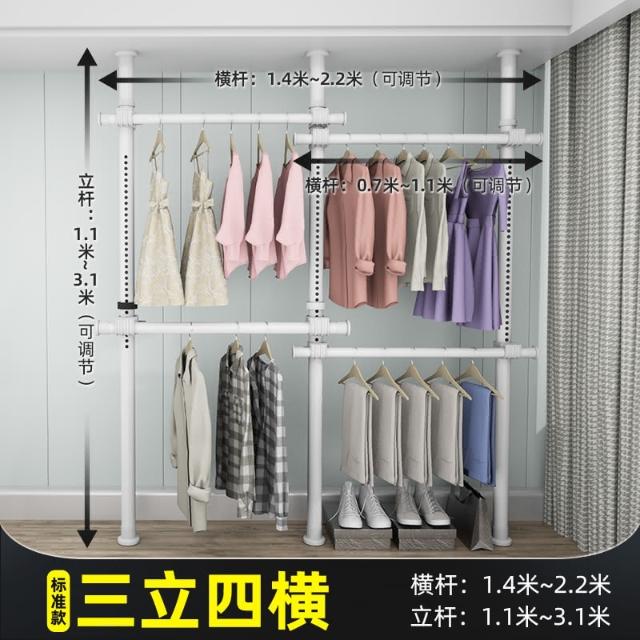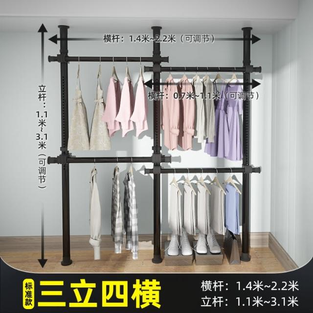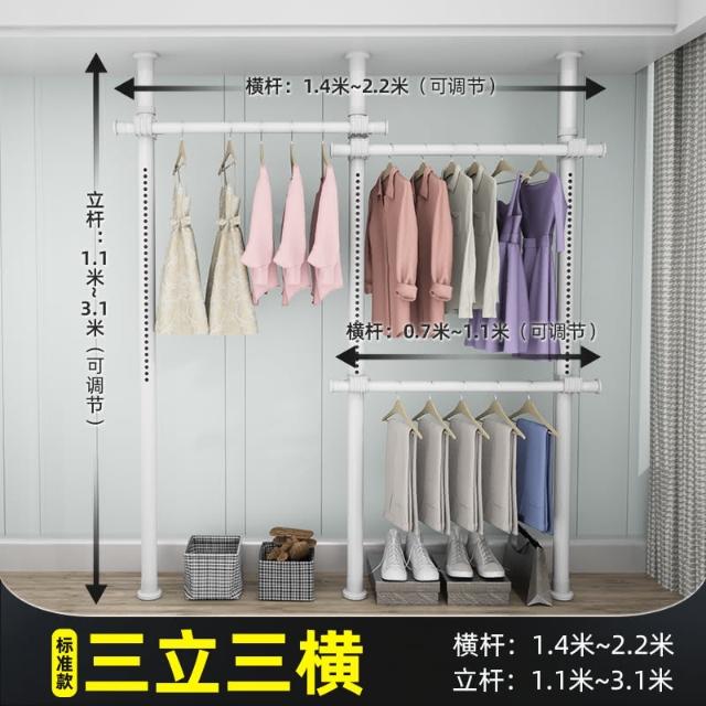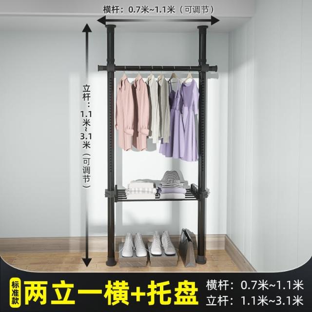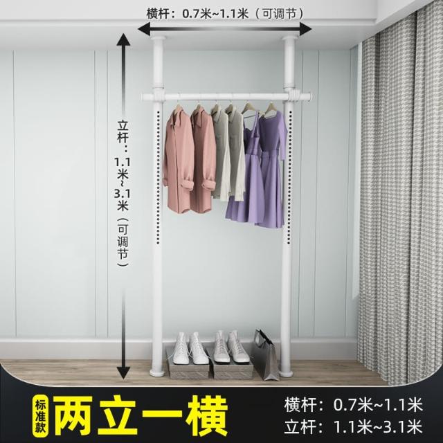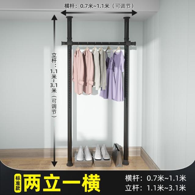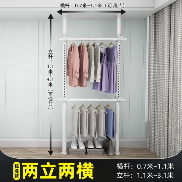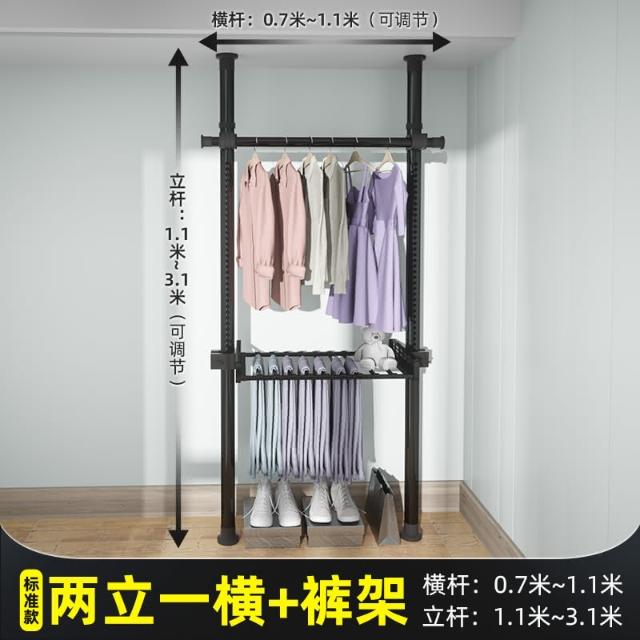 頂天立地晾衣架簡易落地臥室衣帽架免打孔組裝家用室內衣櫃置物架