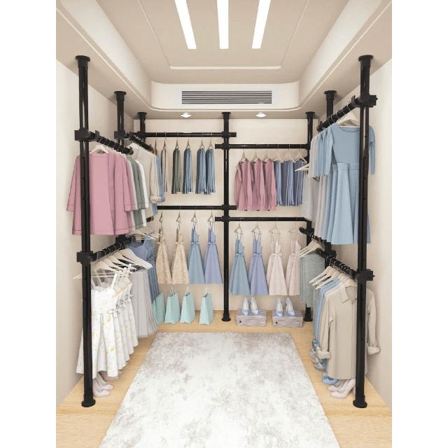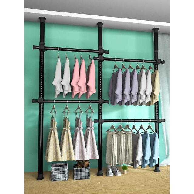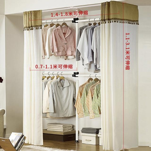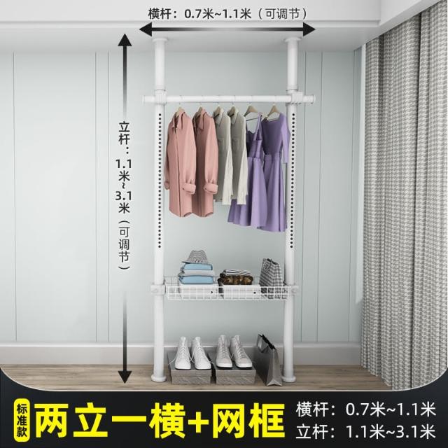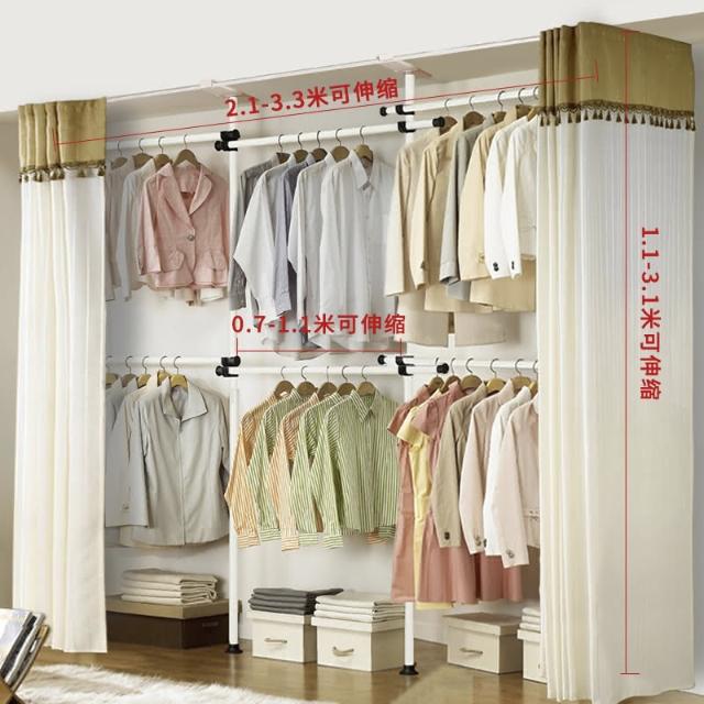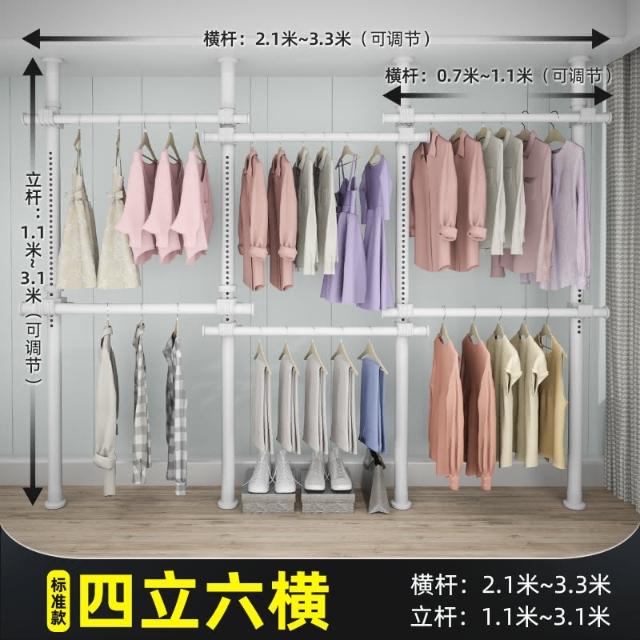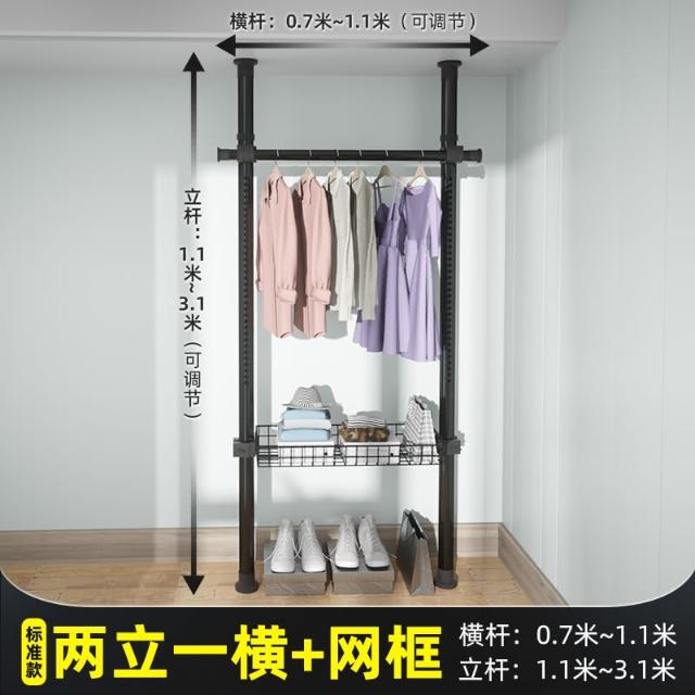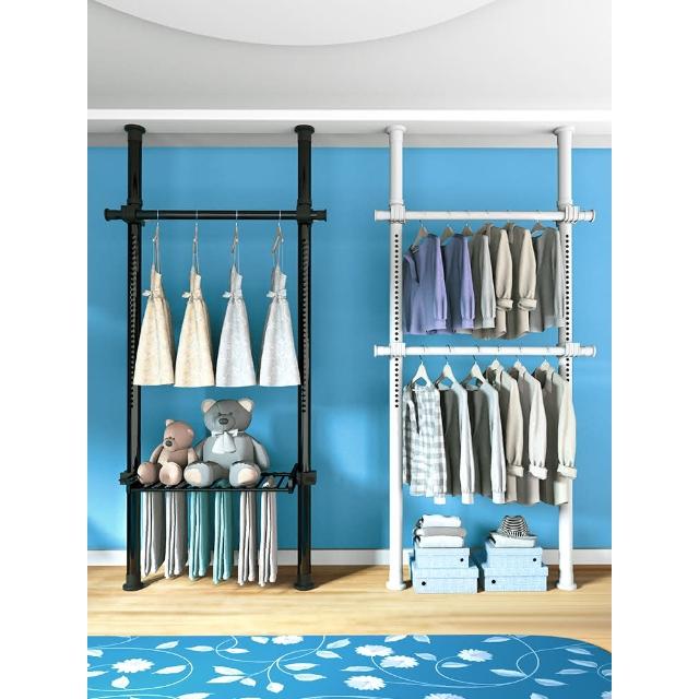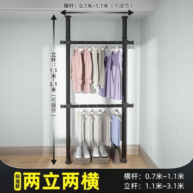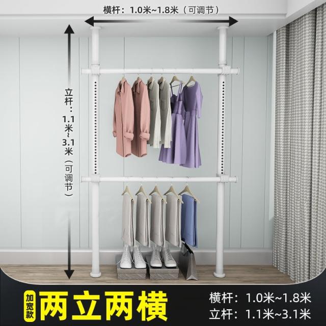 頂天立地晾衣架簡易落地臥室衣帽架免打孔組裝家用室內衣櫃置物架