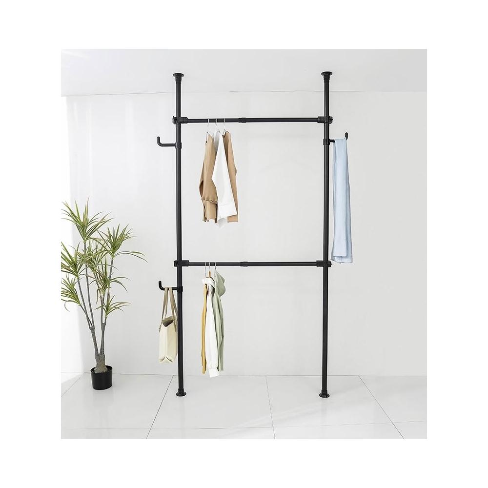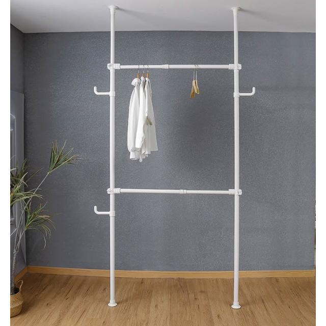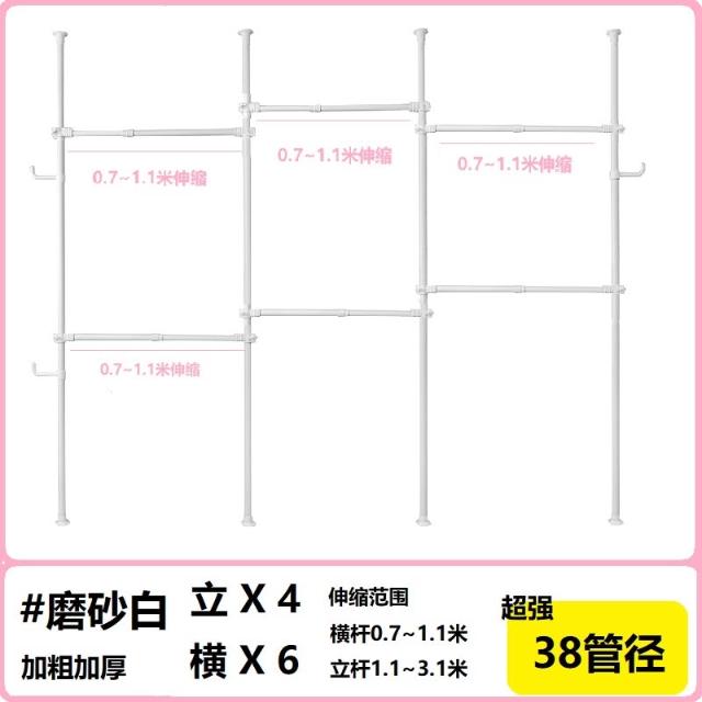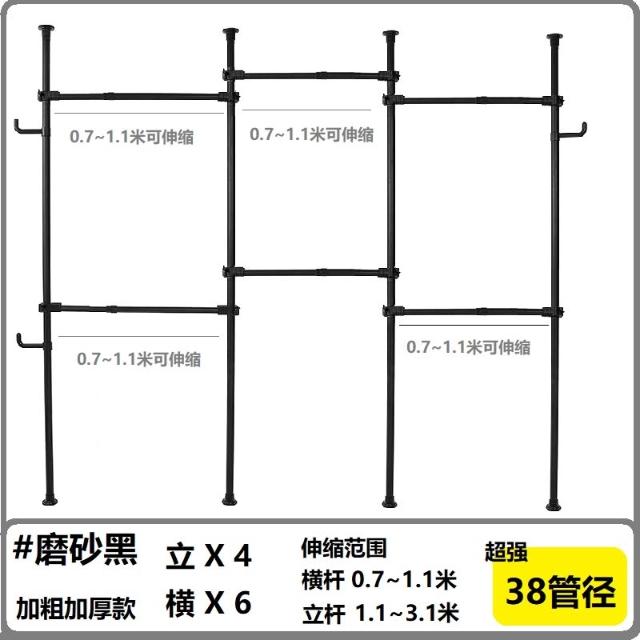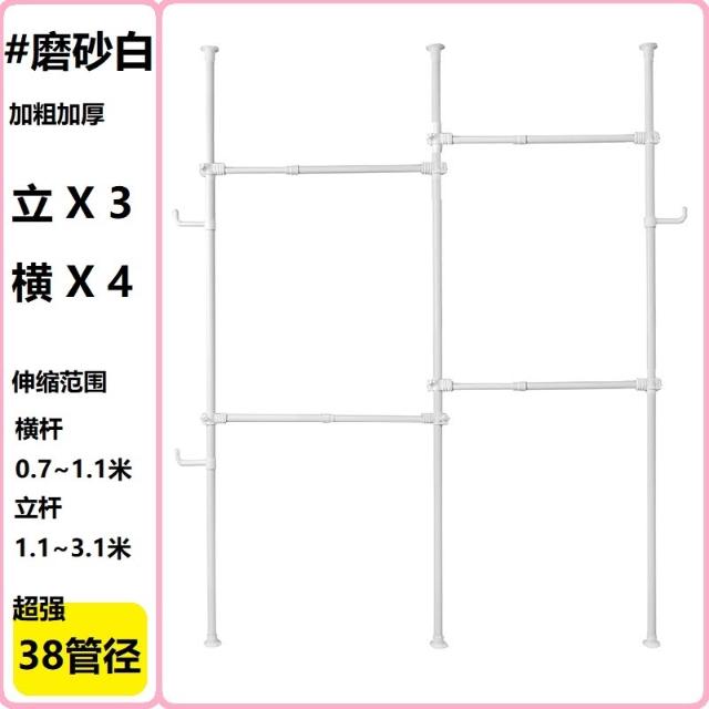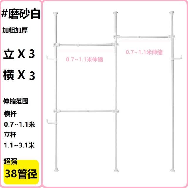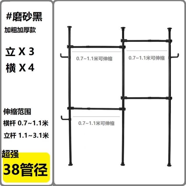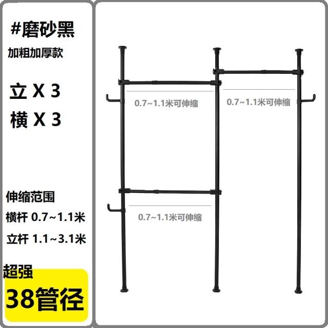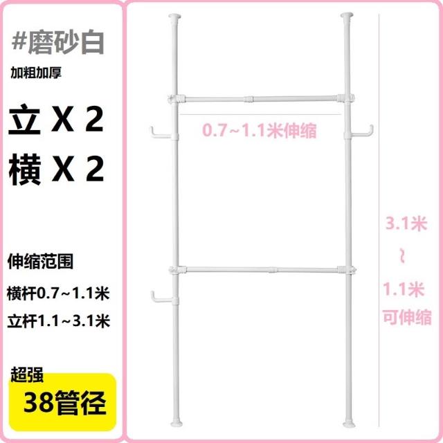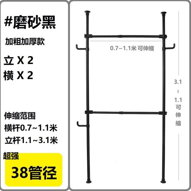 38mm管徑頂天立地衣架加粗加厚免打孔落地陽臺可伸縮晾衣架衣帽架