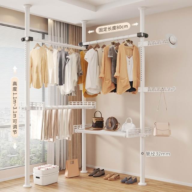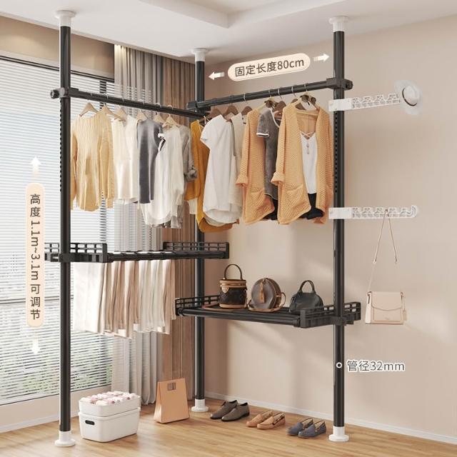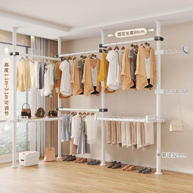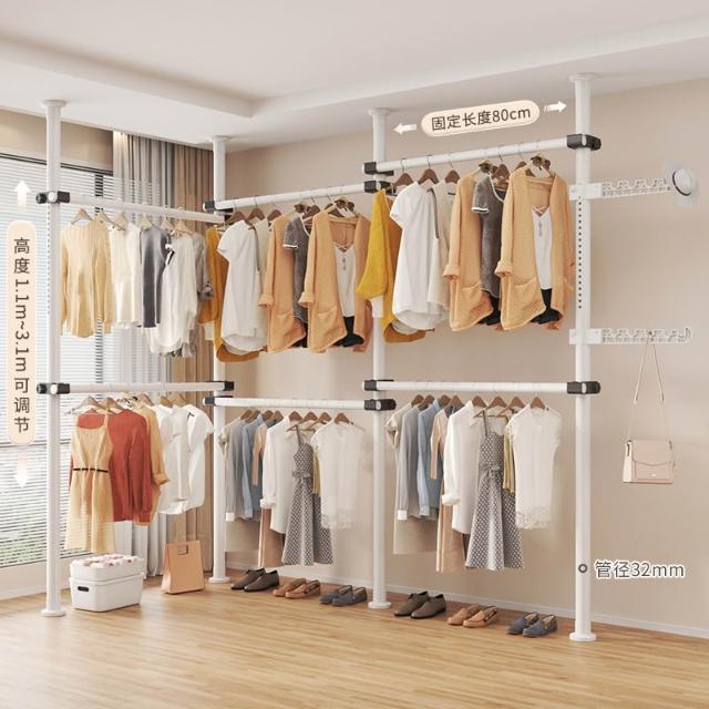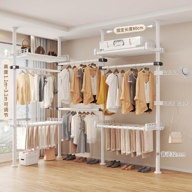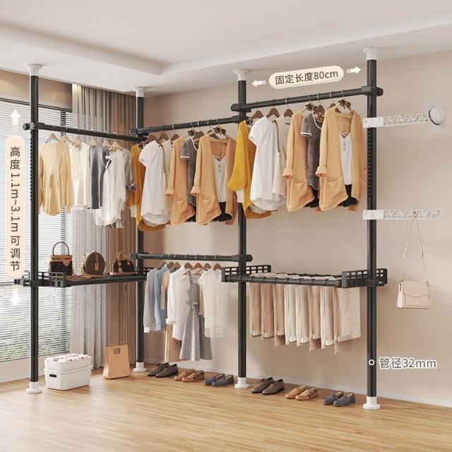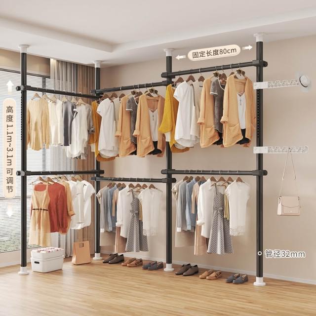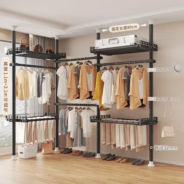步入式衣帽間架子頂天立地置衣架上牆落地組裝開放臥室曬掛收納架