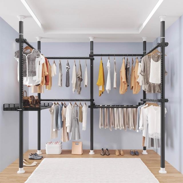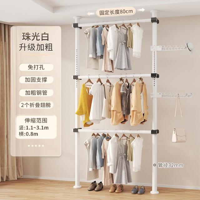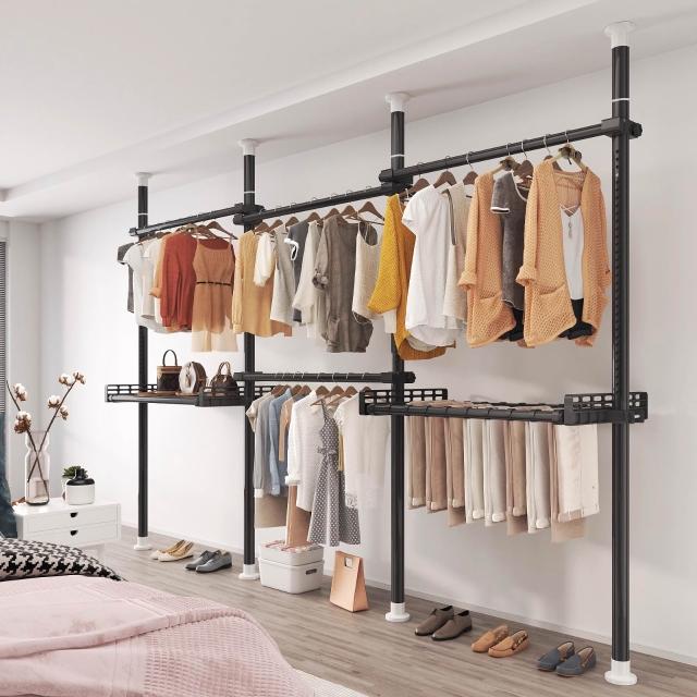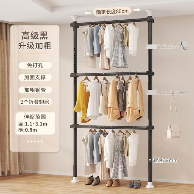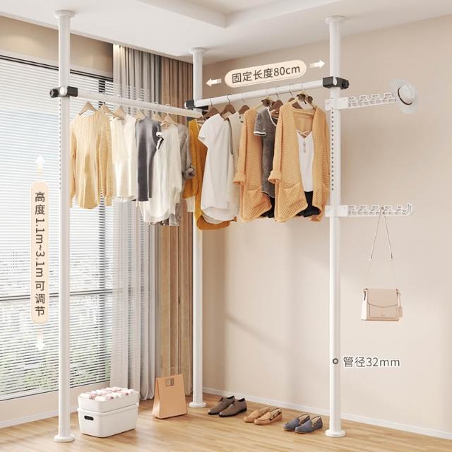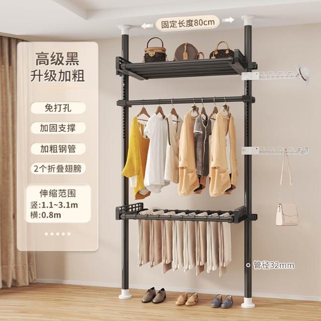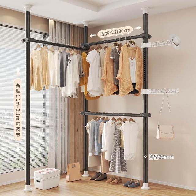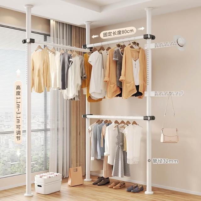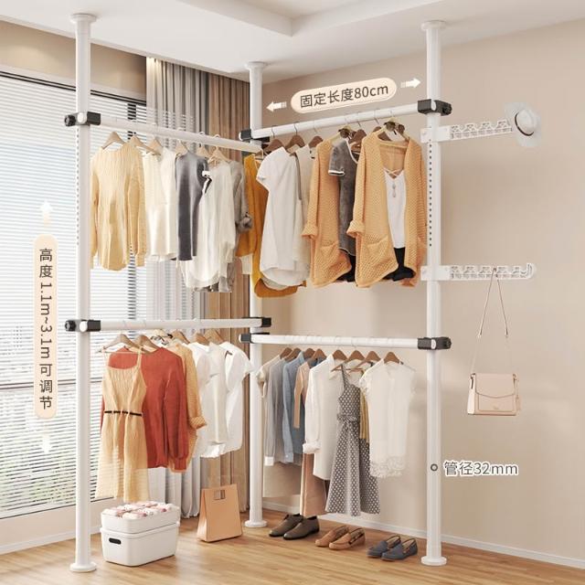 步入式衣帽間架子頂天立地置衣架上牆落地組裝開放臥室曬掛收納架
