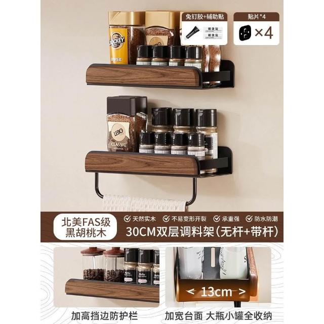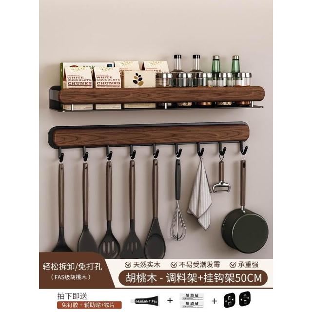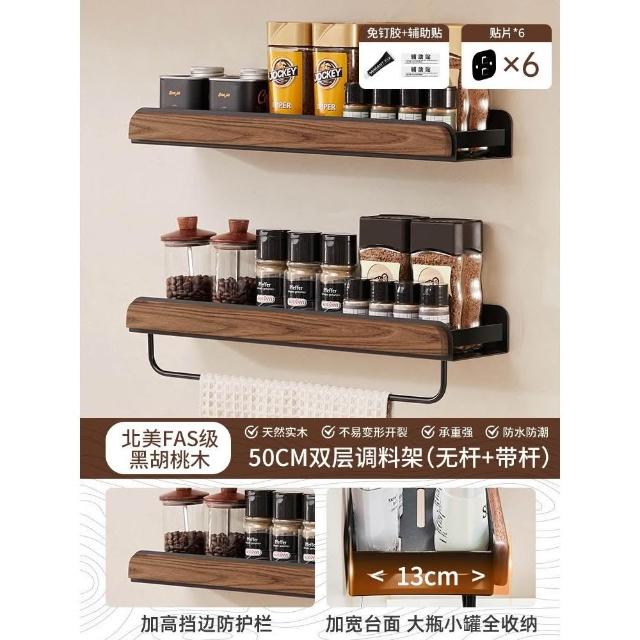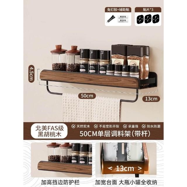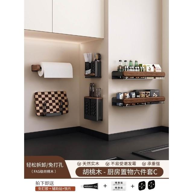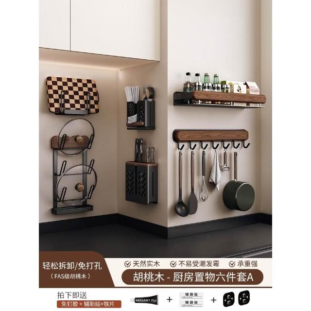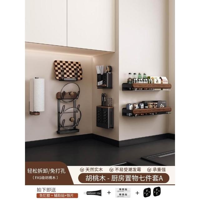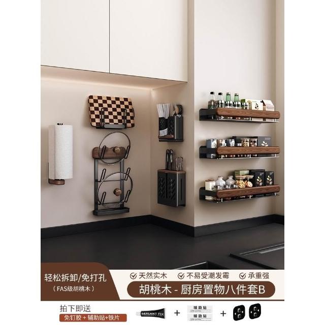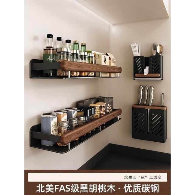 廚房置物架胡桃木調味料壁掛式免打孔牆上多層刀架筷勺子收納架子