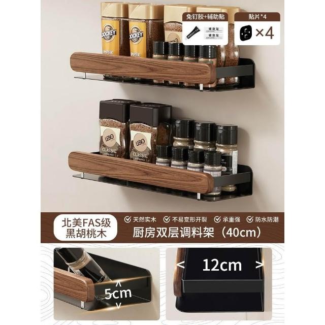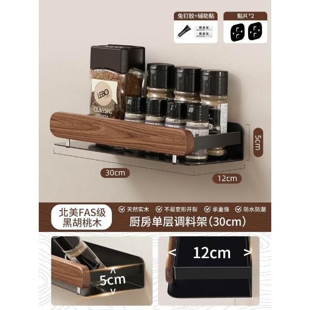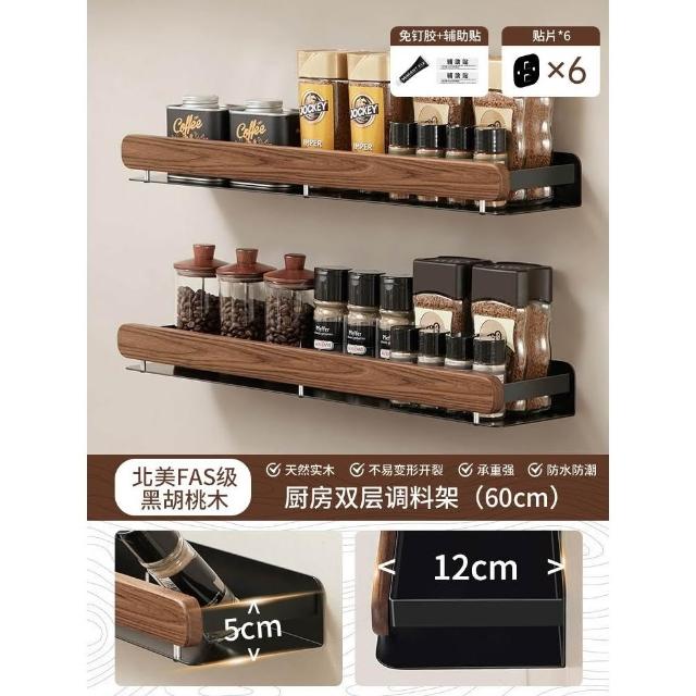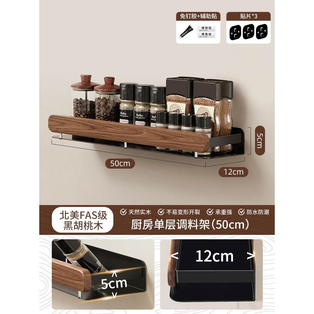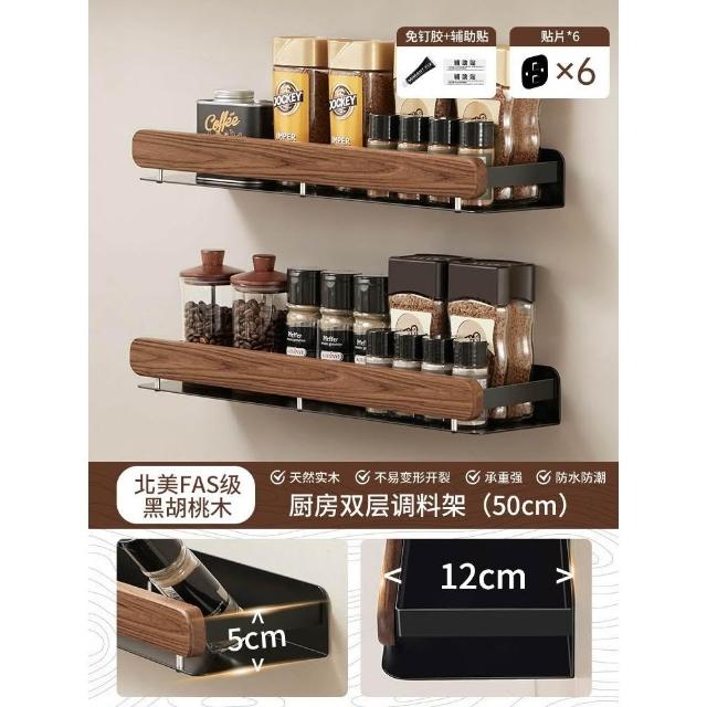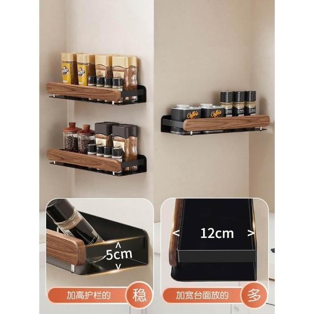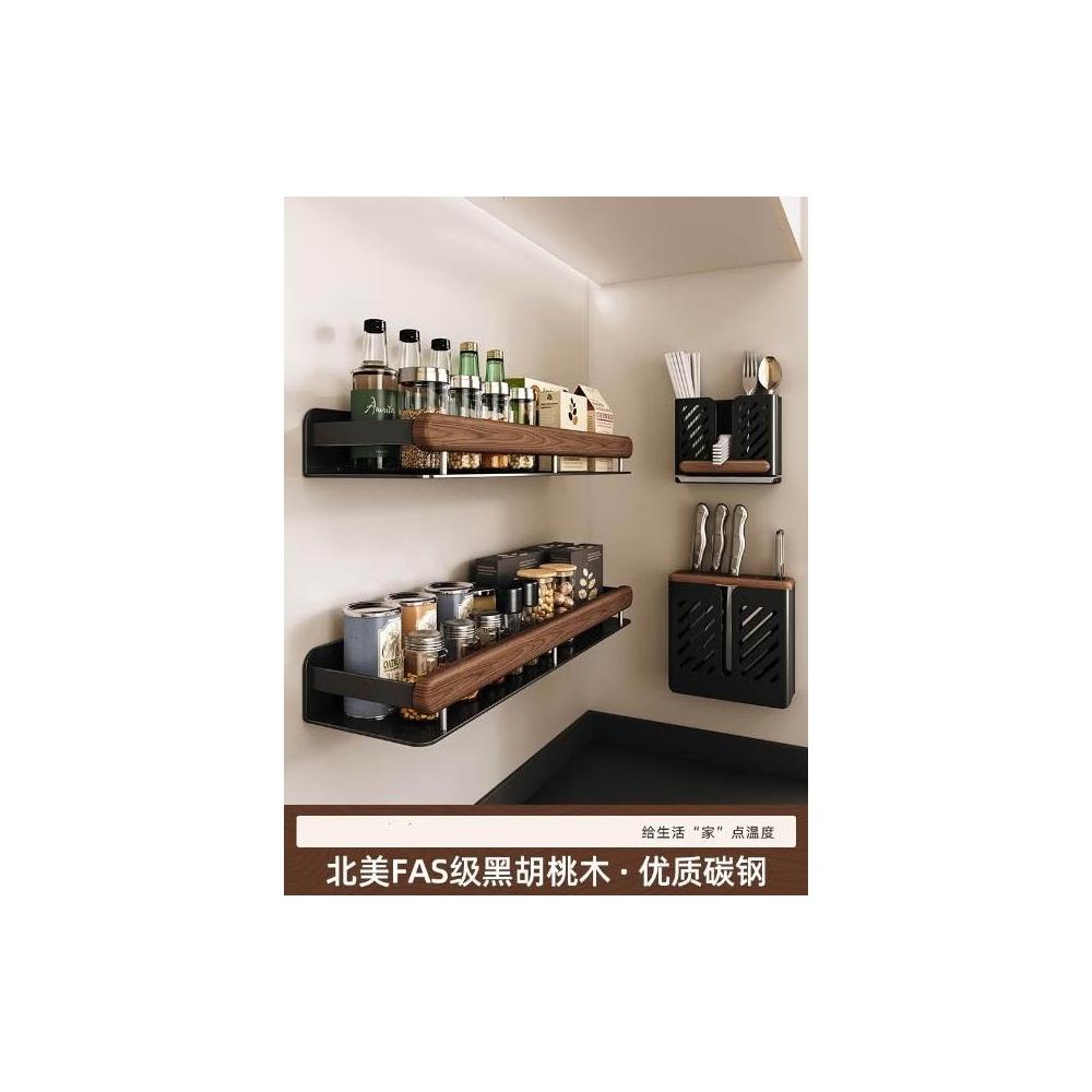 廚房置物架胡桃木調味料壁掛式免打孔牆上多層刀架筷勺子收納架子