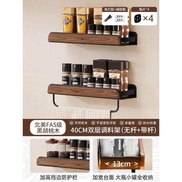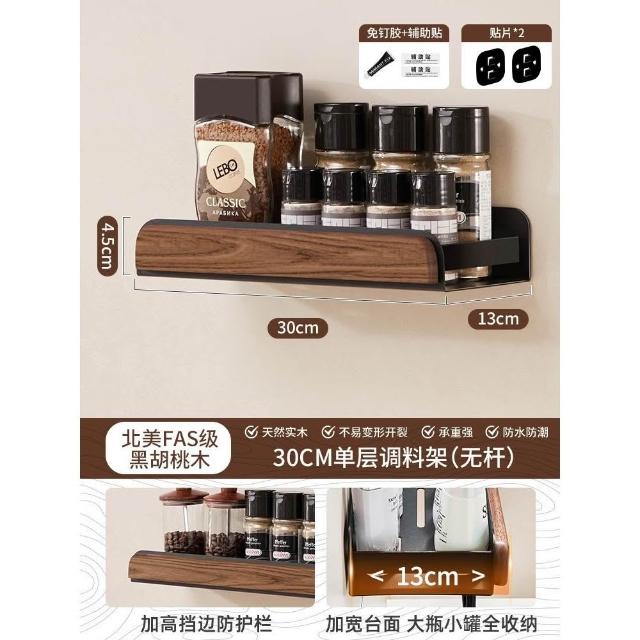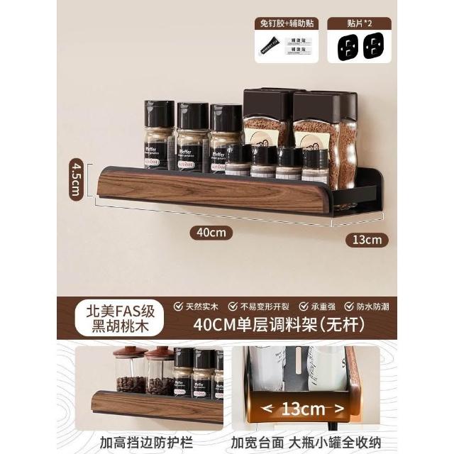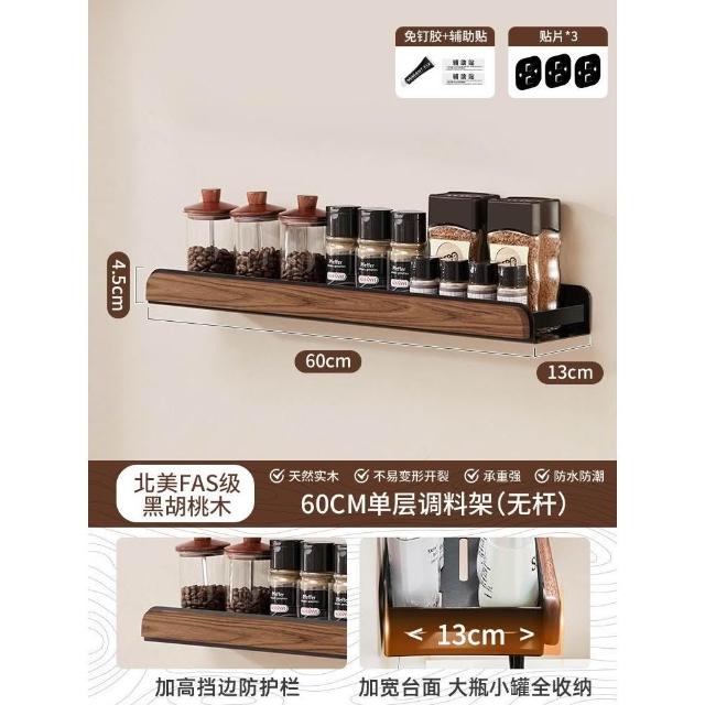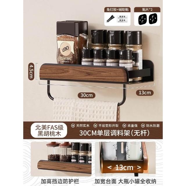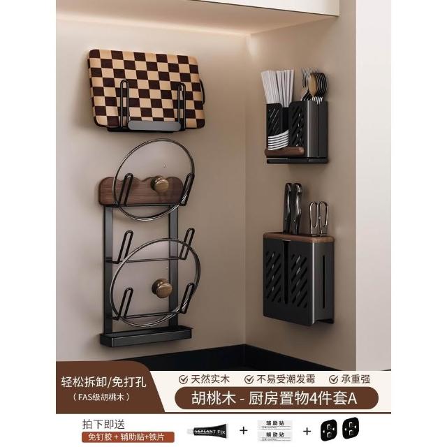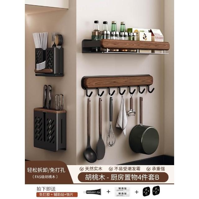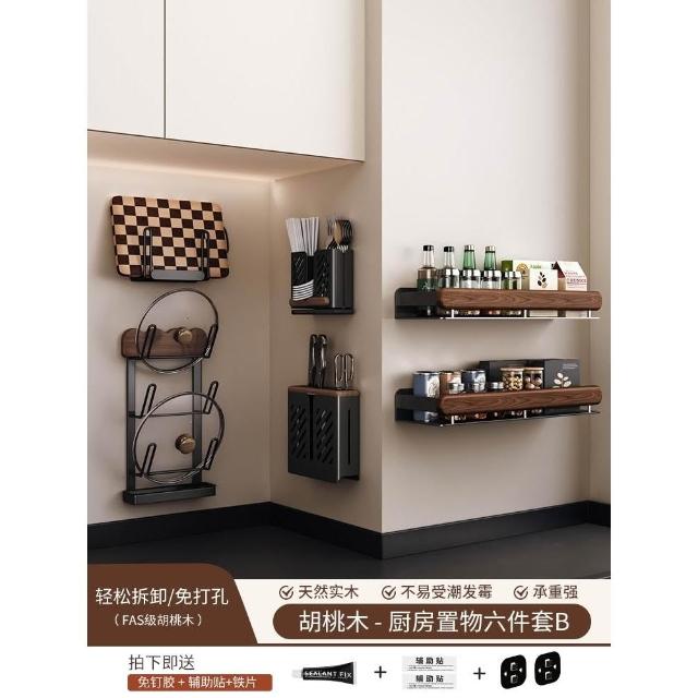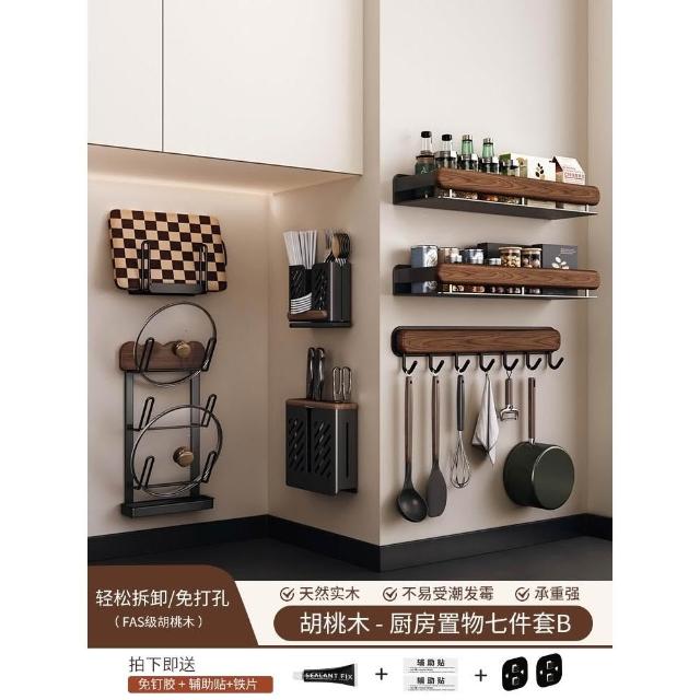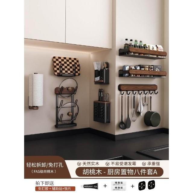 廚房置物架胡桃木調味料壁掛式免打孔牆上多層刀架筷勺子收納架子