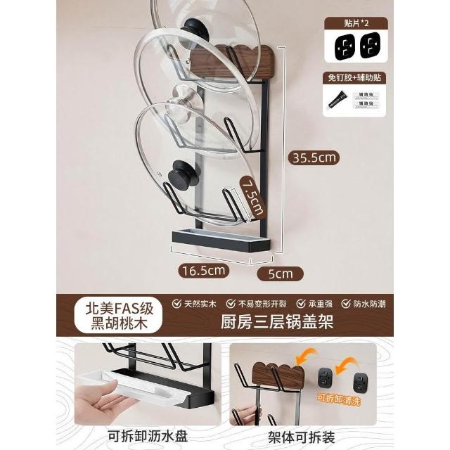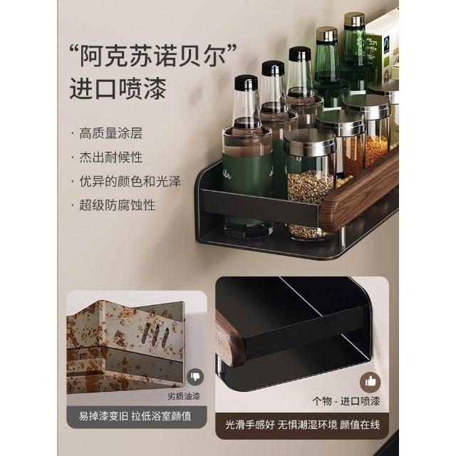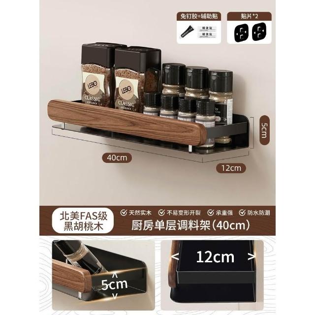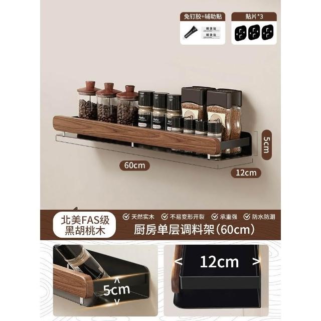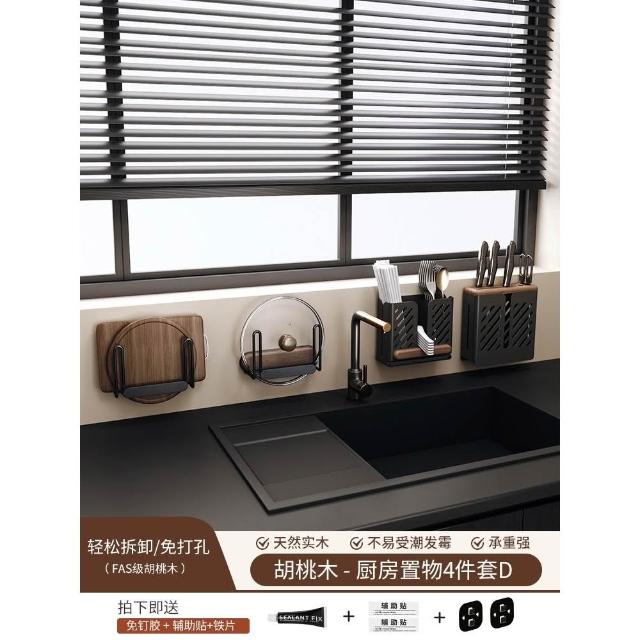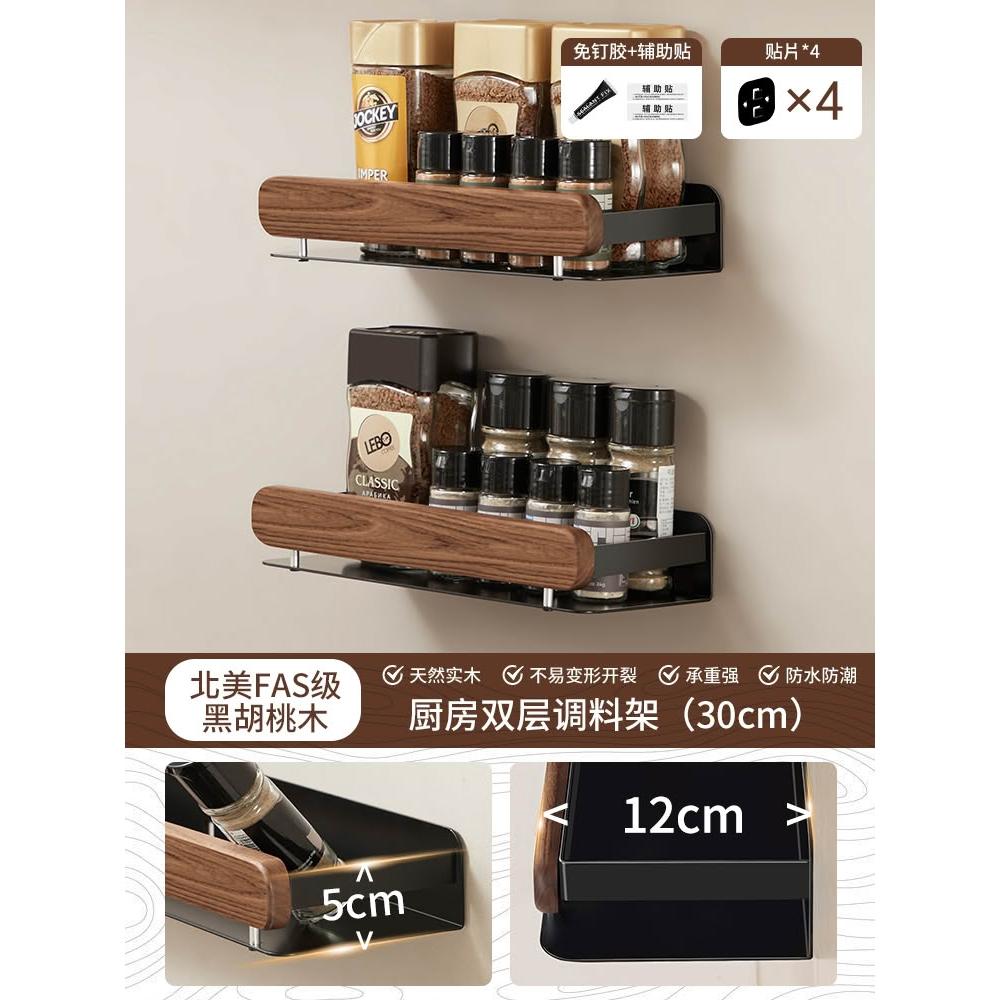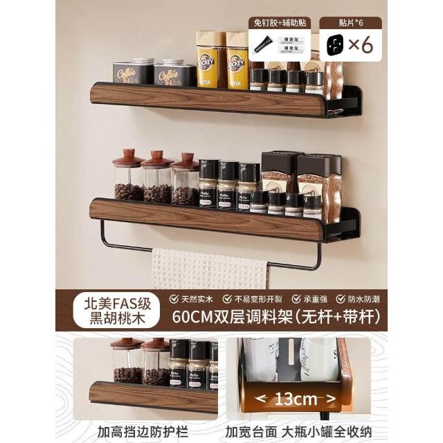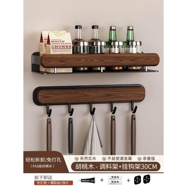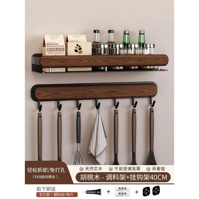 廚房置物架胡桃木調味料壁掛式免打孔牆上多層刀架筷勺子收納架子