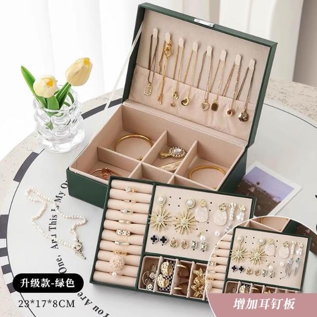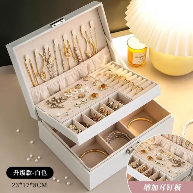 黃金首飾專用收納盒高檔項鏈耳飾耳環帶鎖珠寶精緻盒子輕奢大容量